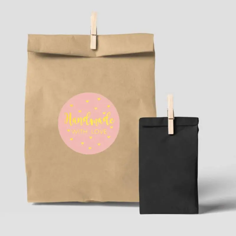 500 штрулон наклейки ручной работы с любовью с золотой фольгой круглые этикетки для печати ручной работы Скрапбукинг