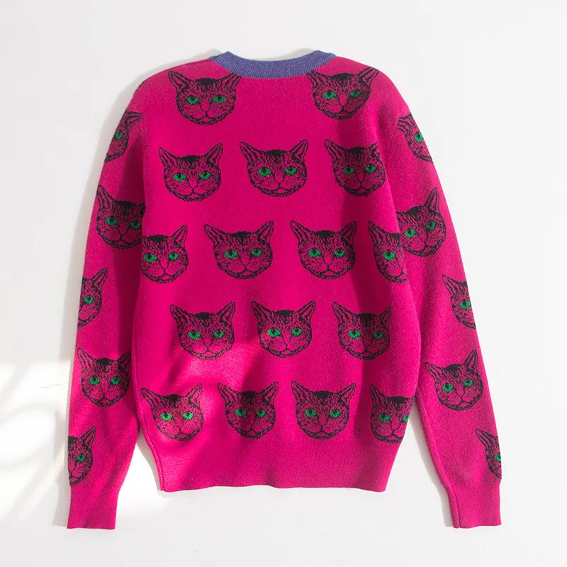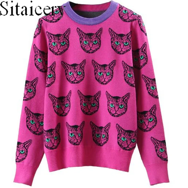 Высокое качество, подиумный дизайнерский вязаный свитер с принтом кота, пуловеры для женщин, Осень-зима, свитер с длинными рукавами, Милый джемпер, оптовая продажа
