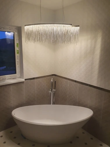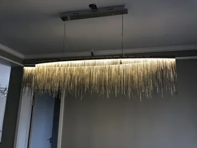 Заказ шёл долго, пришла коробка вся побитая, что сразу насторожило. Люстра, конечно, не стеклянная, но, отрыв коробку, поняла, что ее сильно потрепало. Крепление одно не прикручено, несколько цепочек сломано и оторвано, все винтики разбросаны по коробке, пульт никак не упакован и грязный, как будто уже использовался. По качеству изделия-голимый Китай. Заказывала 100 см вариант за 13541 рублей- считаю, что цена не соответствует качеству. Красная цена этой штуке- три тысячи. Исправность не проверила. Напишу, когда повесим.