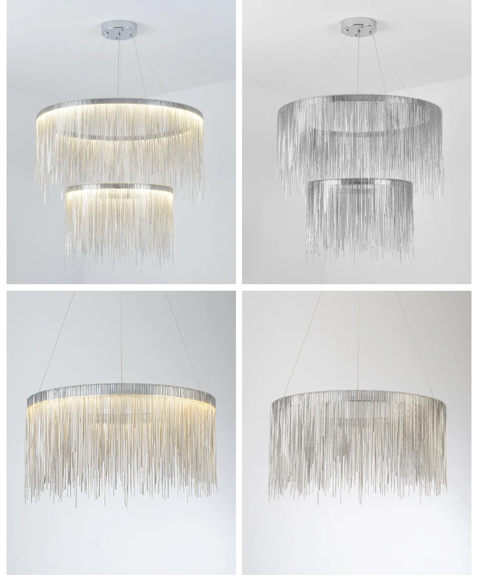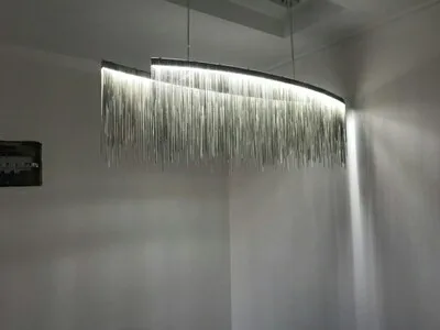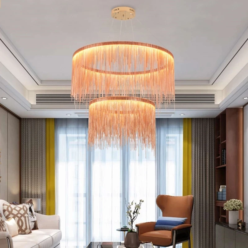 Современные светодиодсветодиодный потолочные люстры с дистанционным управлением светильник, люстры с кисточками и алюминиевой цепочкой, подвесные светильники для помещений