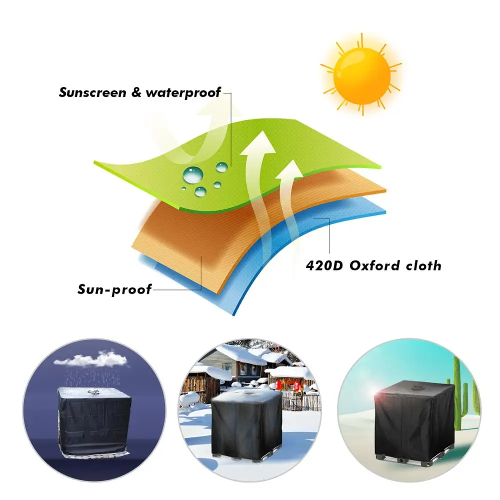 Черный чехол от дождя для 1000 л IBC контейнер, водонепроницаемое ведро для хранения воды