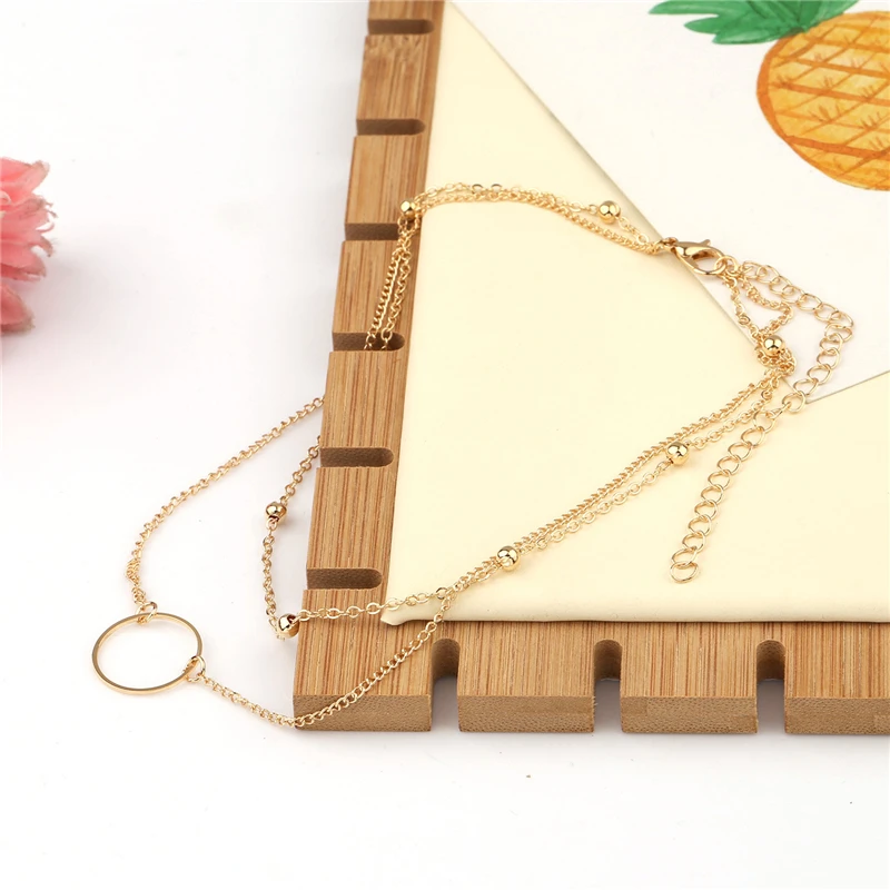 Двухслойное современное ожерелье-чокер для женщин, простой: золото, серебро цветная цепочка с бусинами, цепочка на ключицы, модное эффектное ожерелье, ювелирные изделия