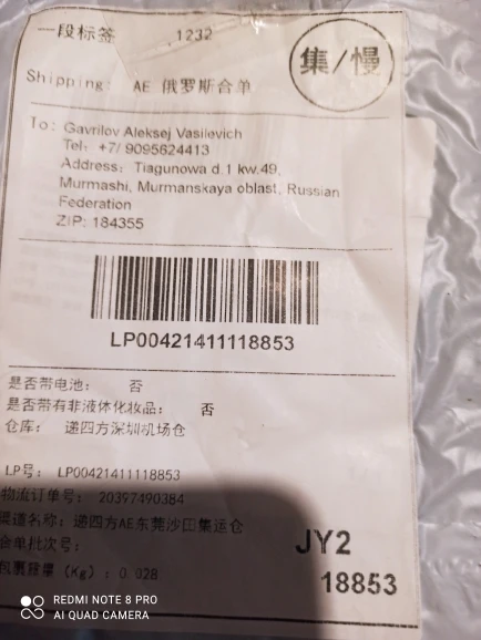 Страна: RU Ships From: China Доставка: Cainiao Super Economy 20.02.2021