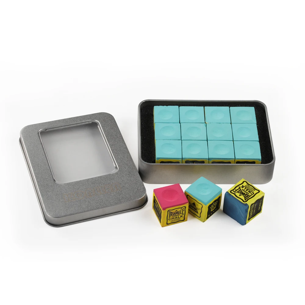 12 штук бильярдных халков с коробкой красный зеленый синий мел 12 штук без скольжения Мел бильярдные аксессуары Дешевые Мел для снукера