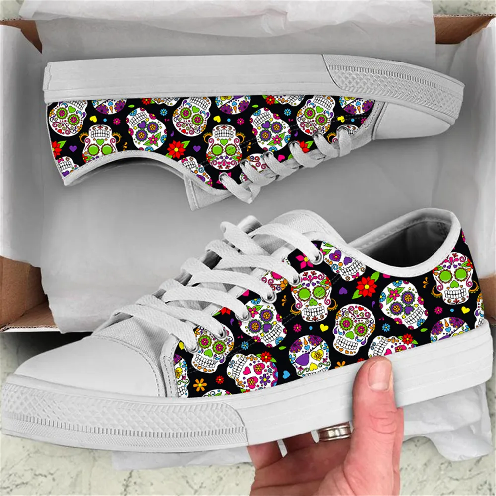 Кроссовки ELVISWORDS женские на шнуровке, классические, с 3D рисунком черепа из сахара, туфли из вулканизованной парусины