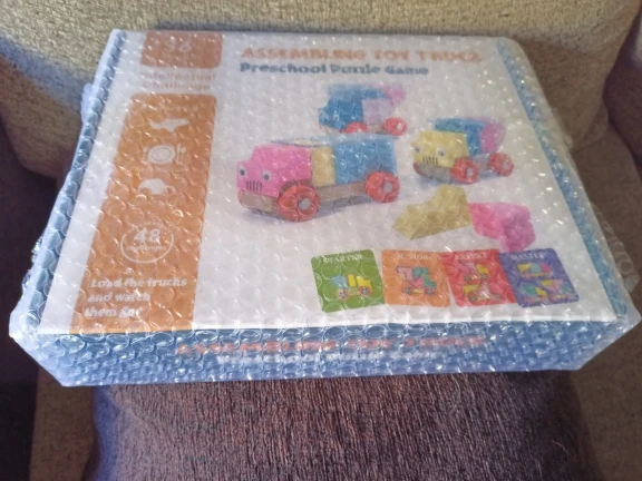 Ha llegado a España en sólo 10 días, muy bien envuelto en papel de burbujas, me encanta este juguete, estimula bastante la imaginación y lógica, volúmenes... En la libreta vienen 48 desafíos distintos con sus soluciones.