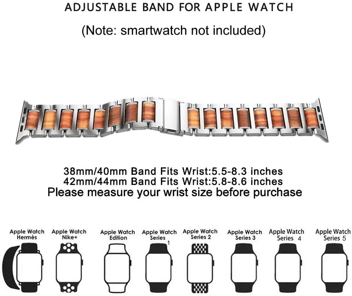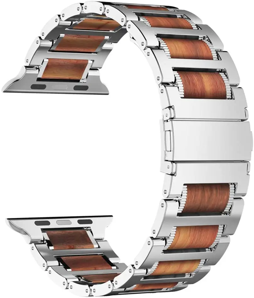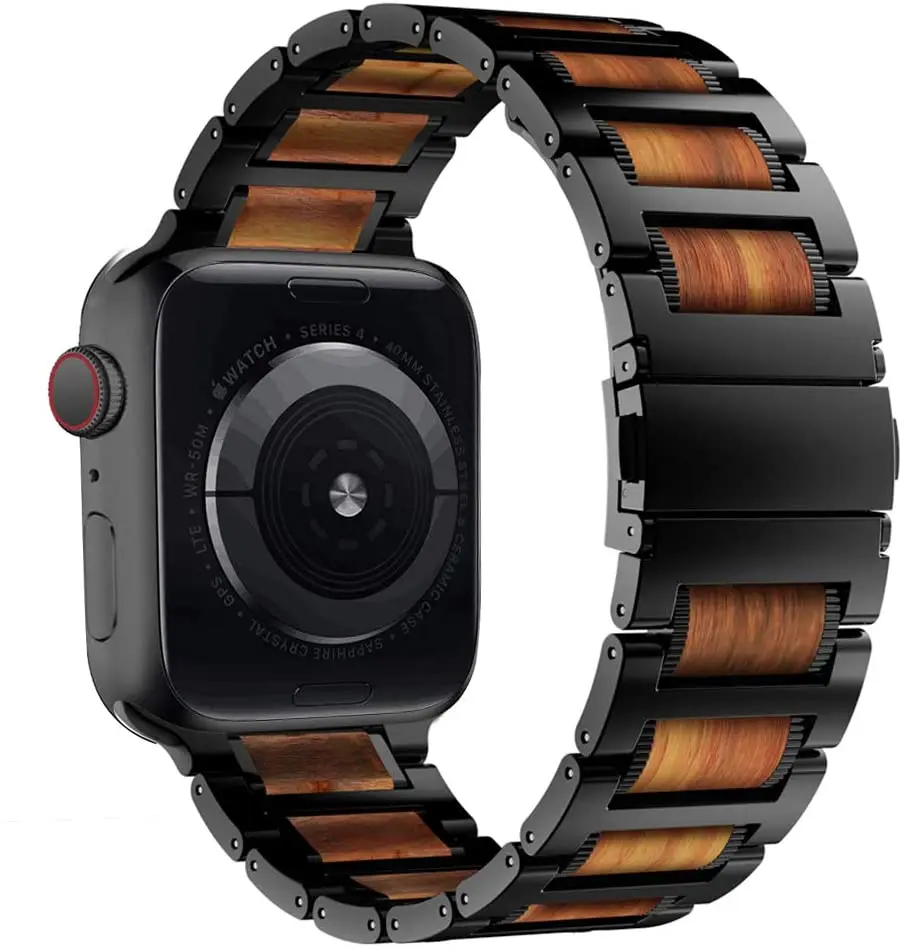 1. Изготовлено из высококачественного металла из нержавеющей стали 316L и натурального черного сандалового дерева, изготовлено по индивидуальному заказу для Apple Watch с удивительными цветами и дизайном