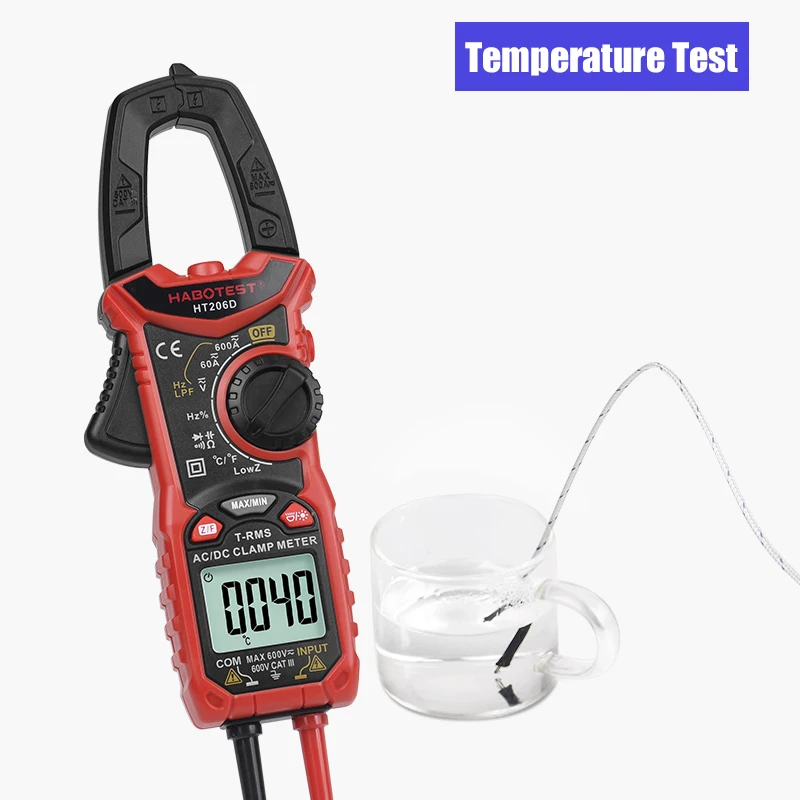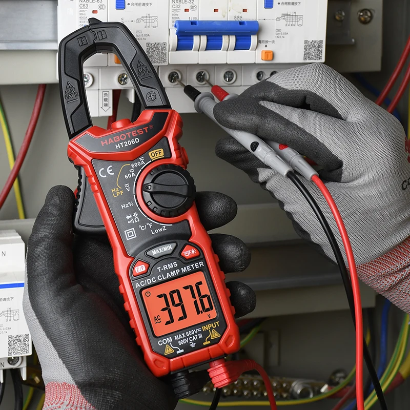 Токоизмерительные клещи, амперметр HABOTEST HT206, профессиональные цифровые клещи, Автомобильный Мультиметр, AC DC 600V 600A, тестер напряжения