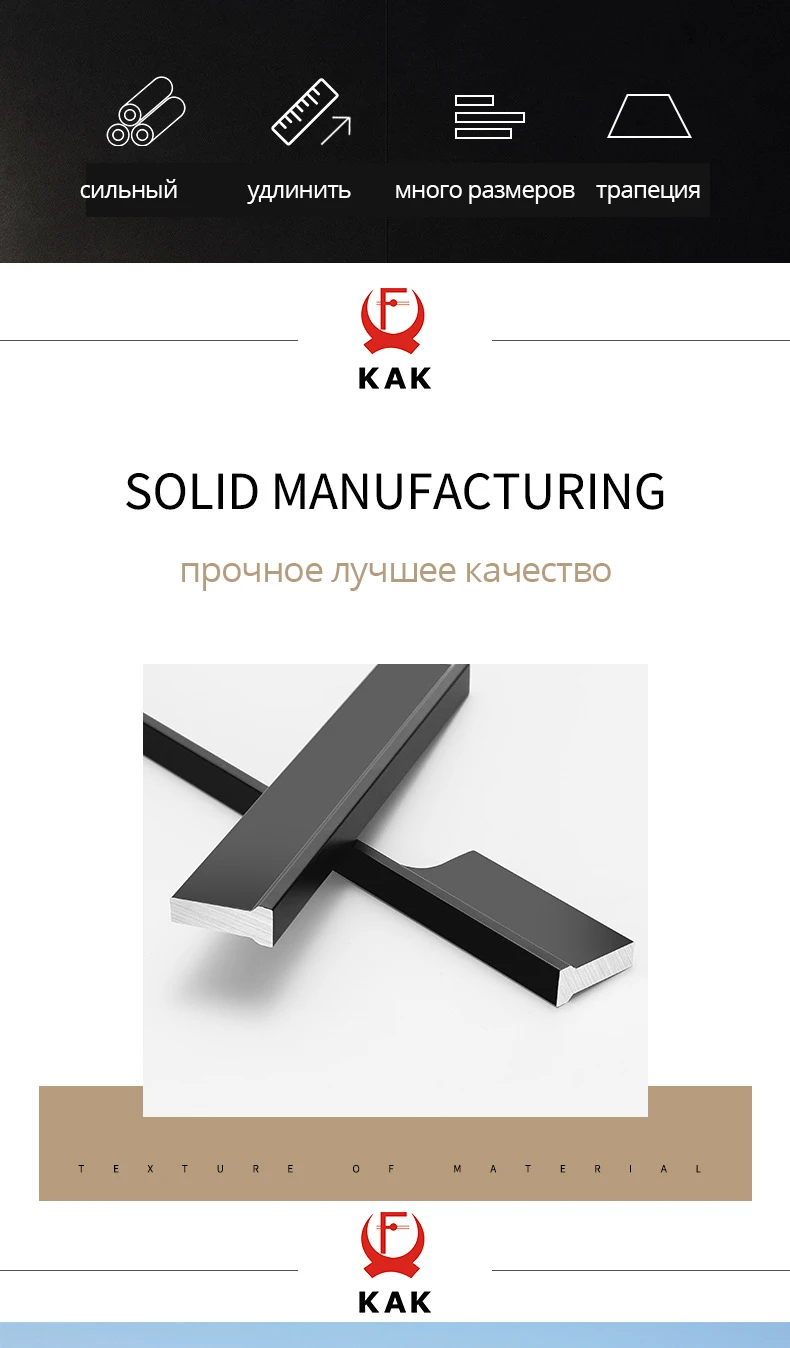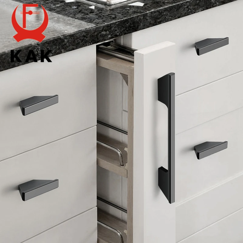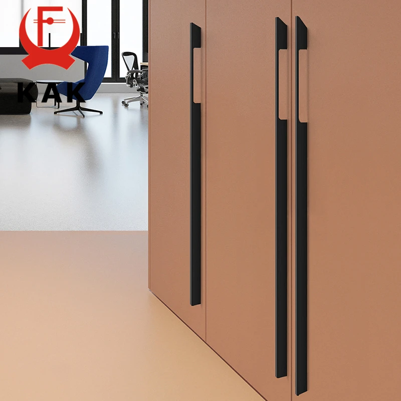 Ручка кухонная KAK, черная, из алюминиевого сплава, длина ручка для раздвижной двери шкафа, оборудование для обработки мебели