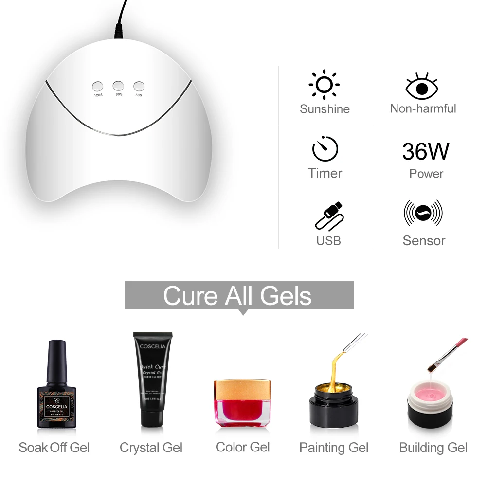 Электрическая машинка для маникюра COSCELIA UV светодиодный инструменты для ламп, с базовым и топовым покрытием набор гель-лаков для ногтей, все для маникюра