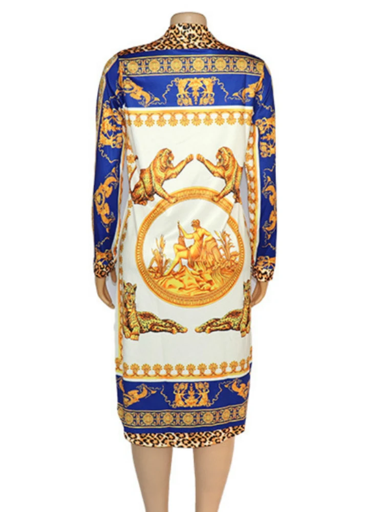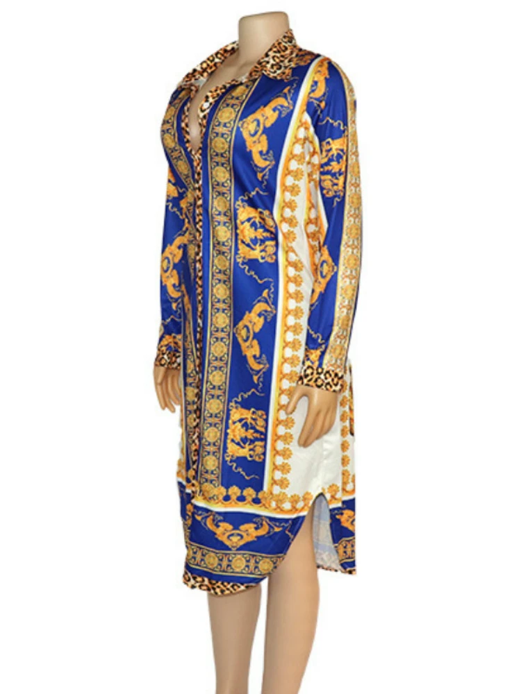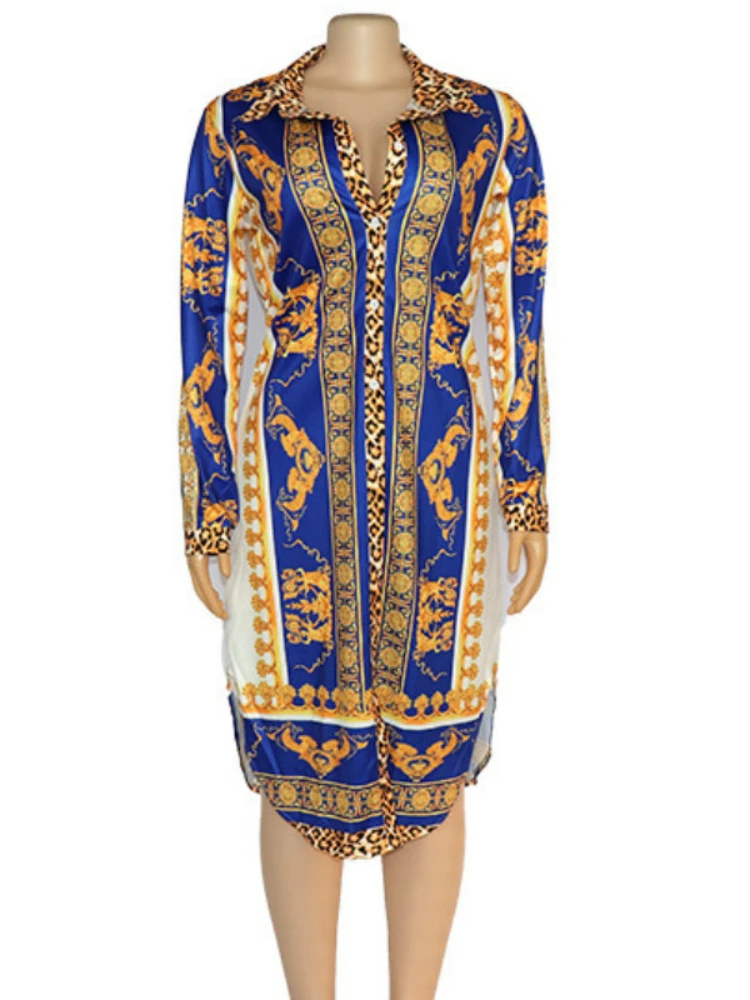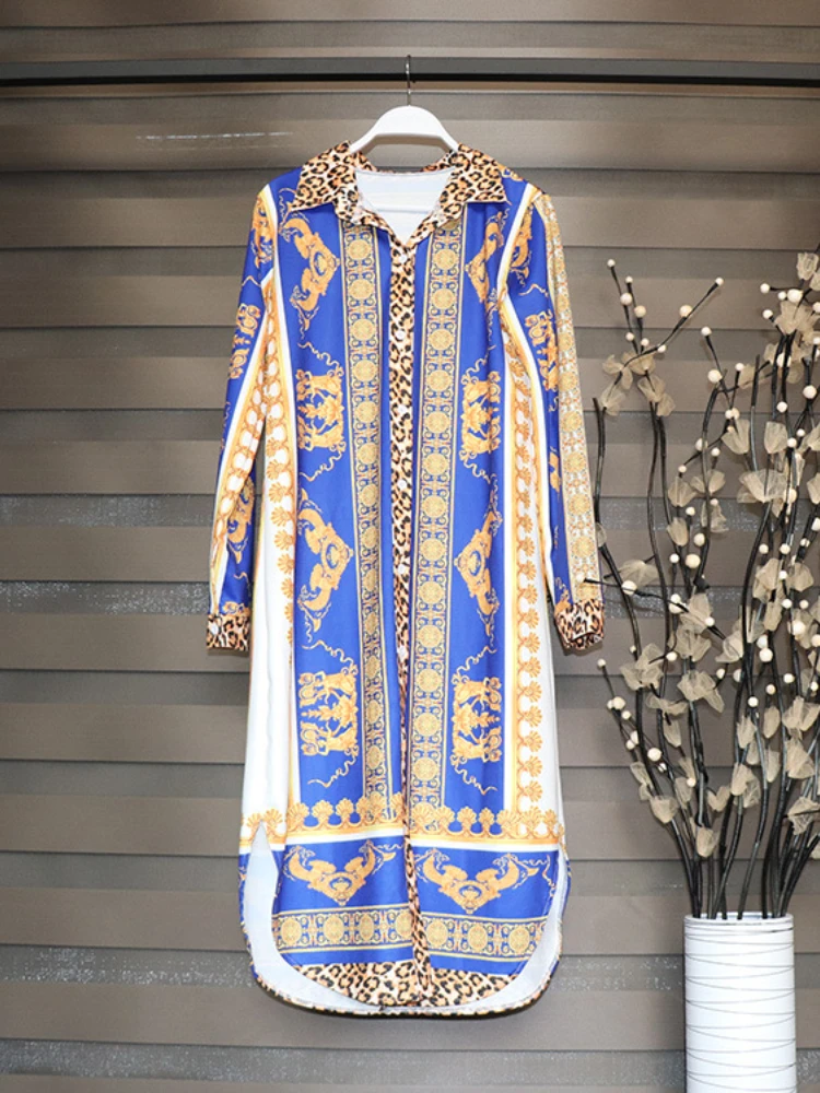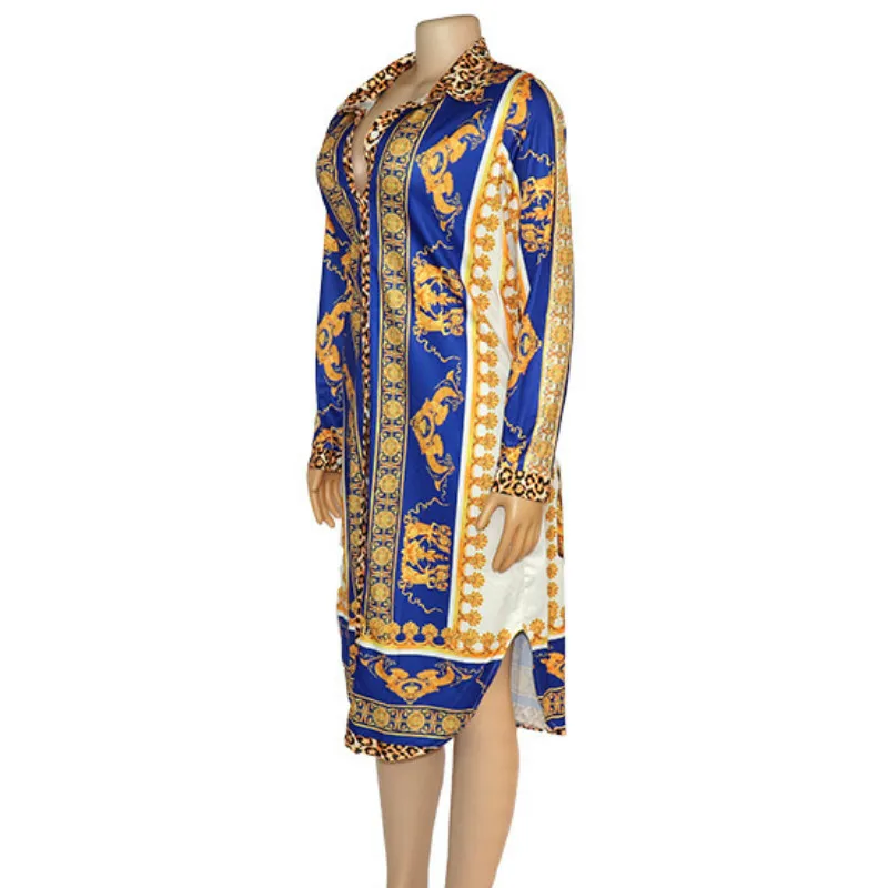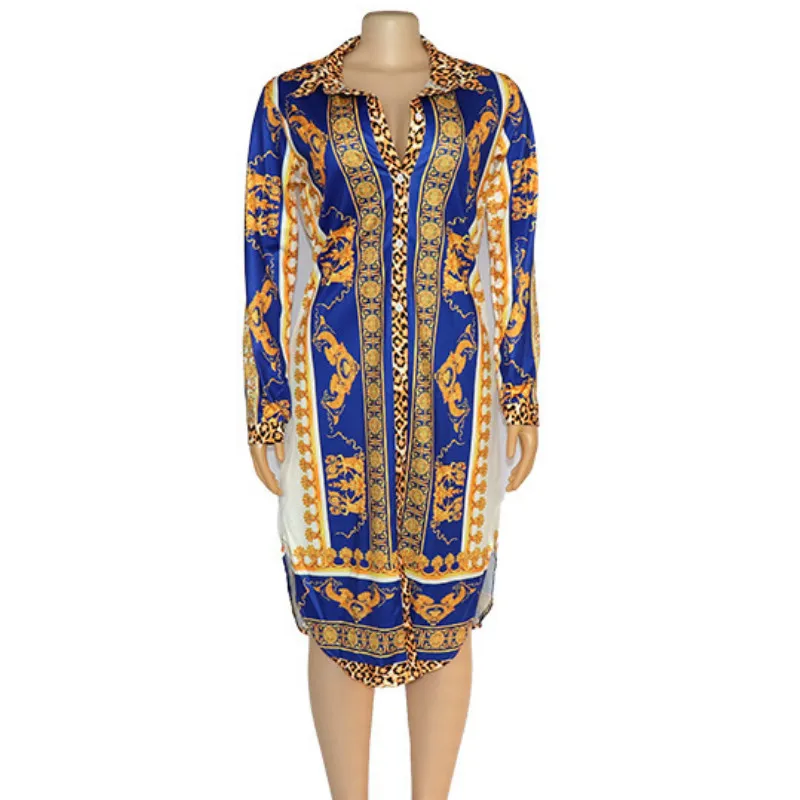 Женское платье-рубашка с принтом, желтое или синее платье на пуговицах с длинными рукавами, модное платье в африканском стиле на осень и весну, новинка 2022