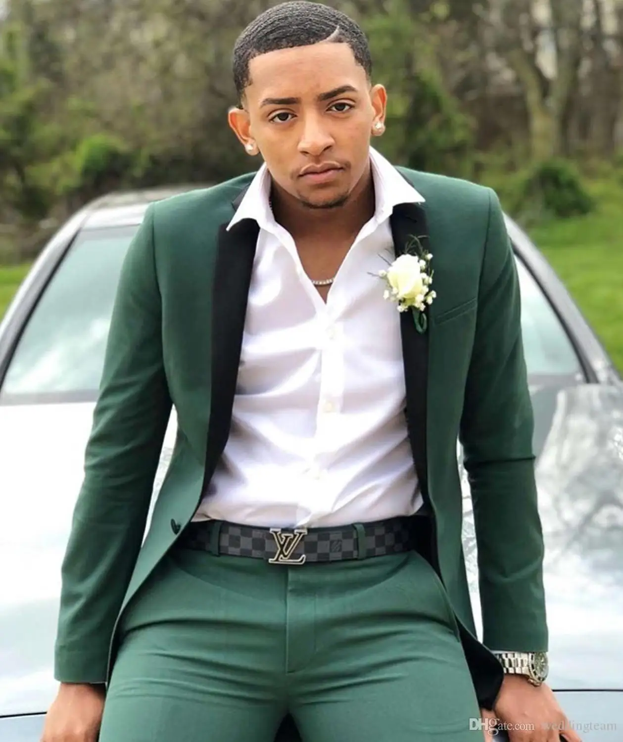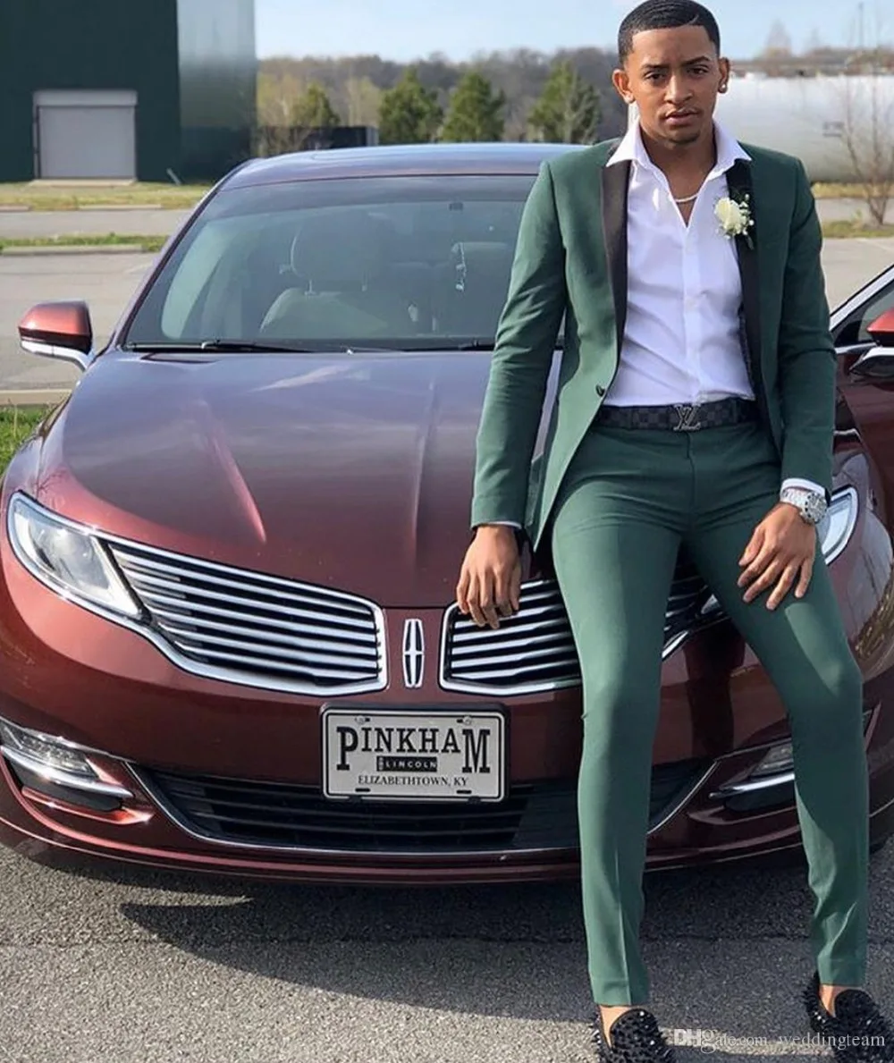 Костюм мужской облегающий охотничий зеленый из 2 предметов, свадебные смокинги для шафера с заостренным лацканом, официальный костюм для выпускного вечера (пиджак и брюки)