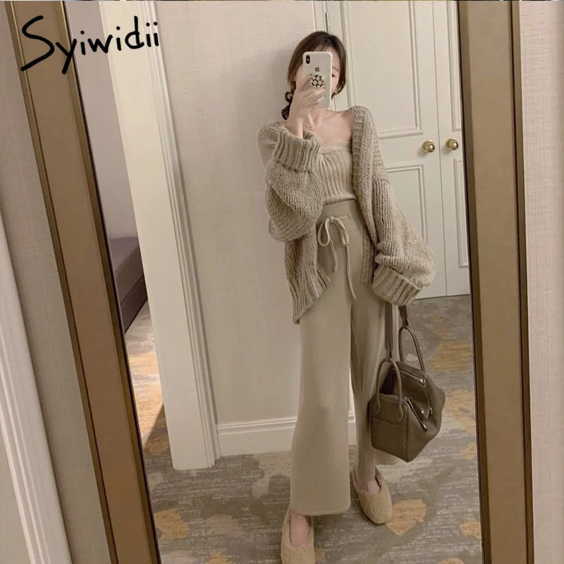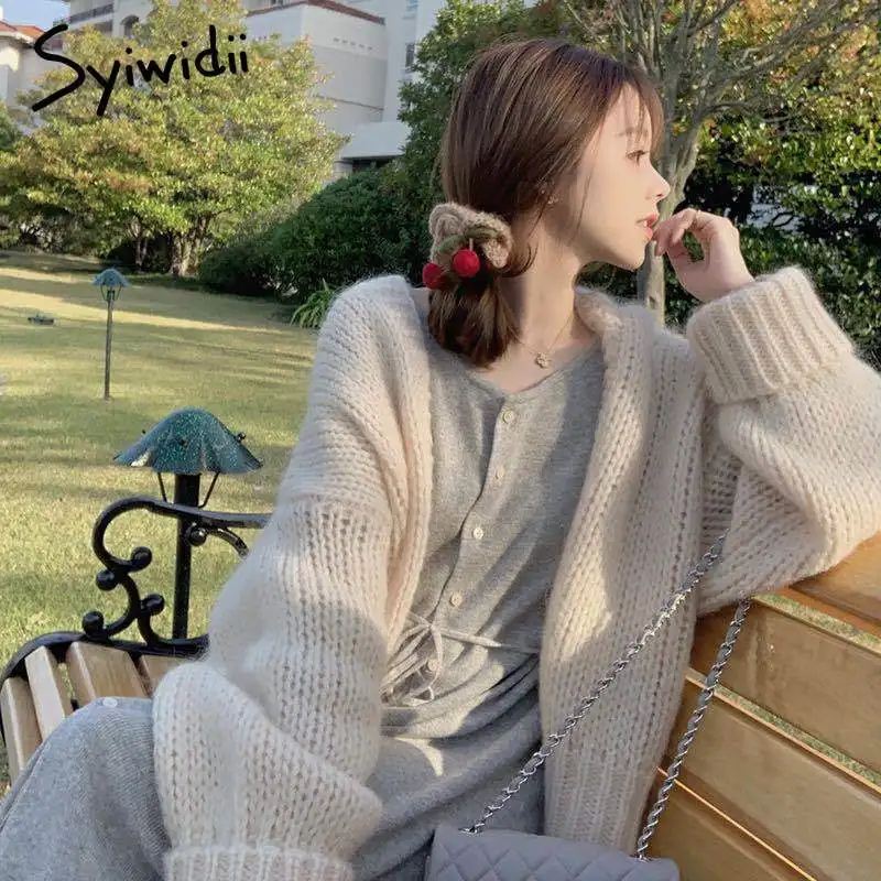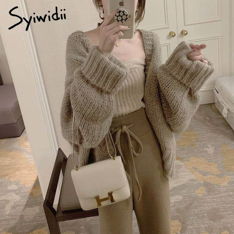 Syiwidii женские свитера оверсайз свитер для женщин кардиганы свободные женские Пальто повседневные модные вязаные однотонные женская одежда 2020 цвета хаки бежевый розовый