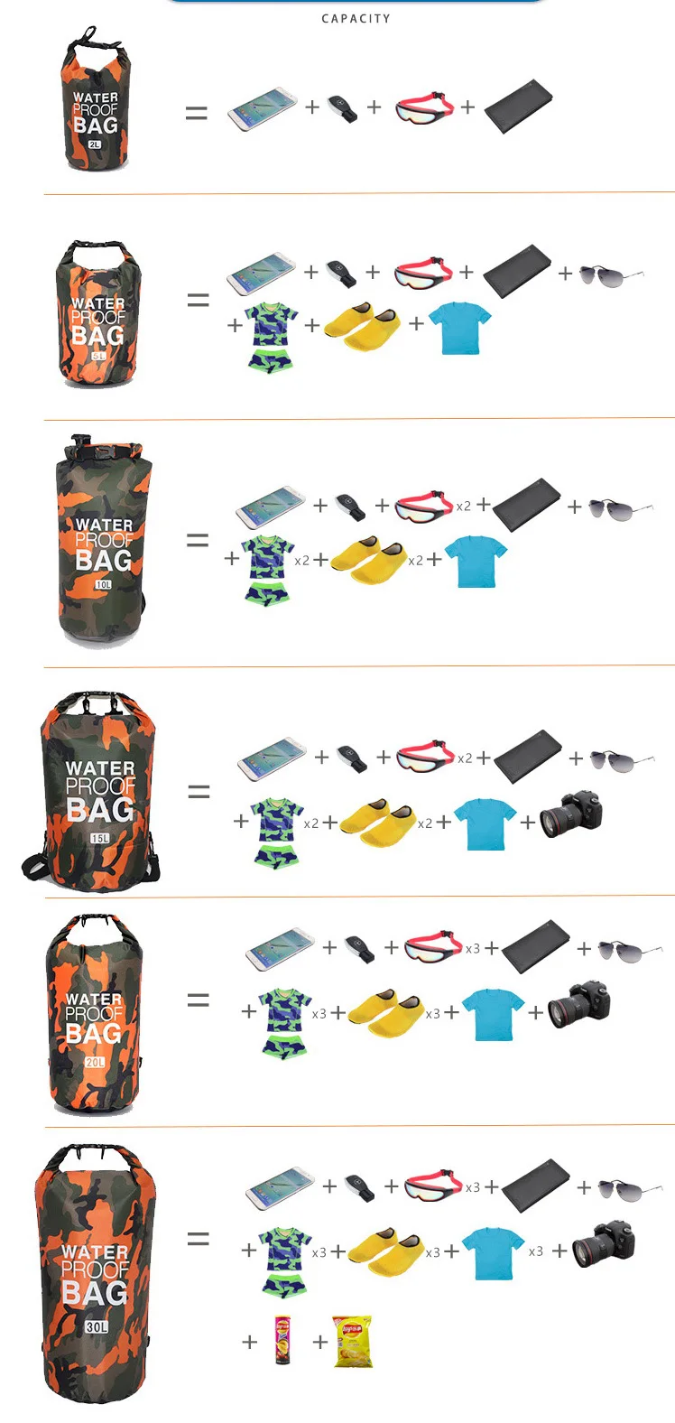 Водонепроницаемая сухая сумка 2 л-30 л, камуфляжный рюкзак для пруд...