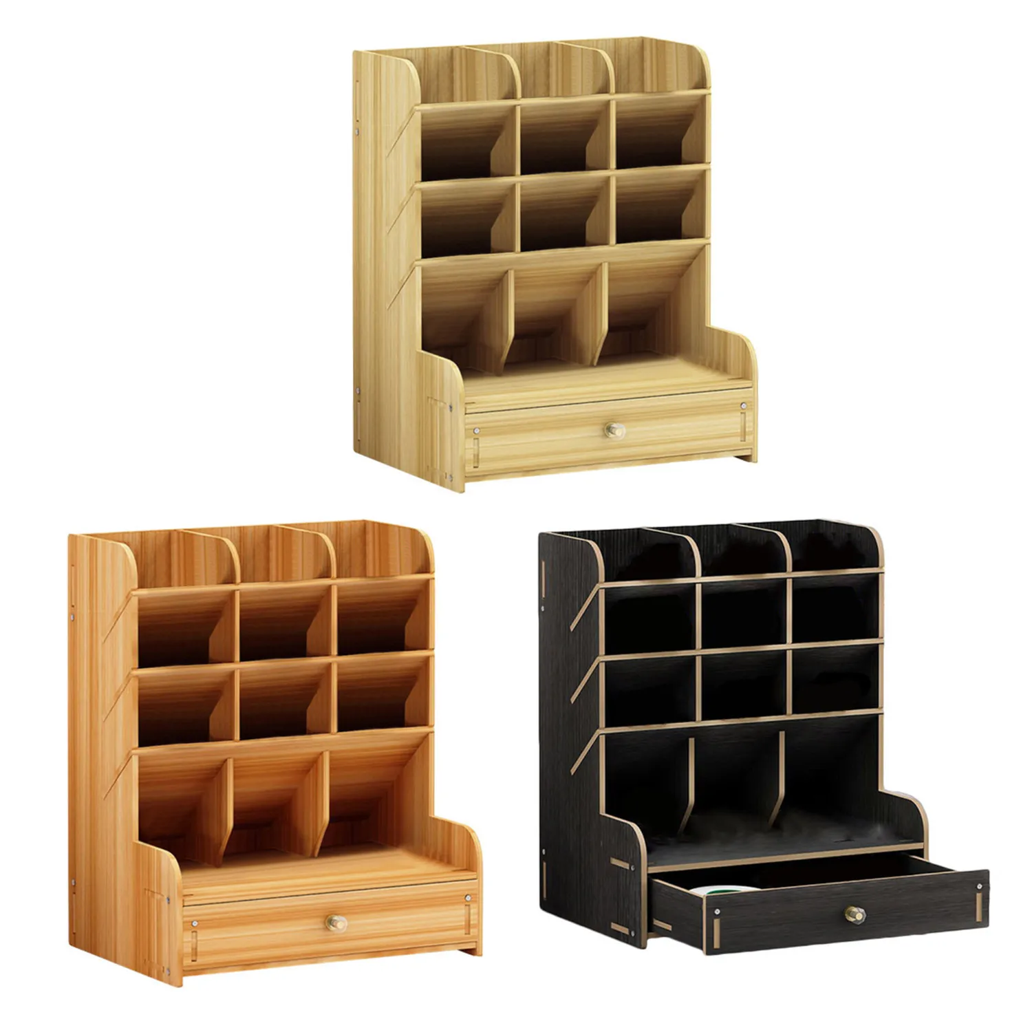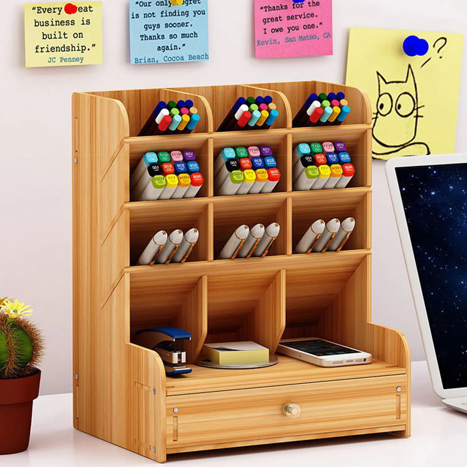 Деревянный Настольный Органайзер многофункциональный DIY карандаш держатель шкаф для хранения с ящиком для офиса школы дома