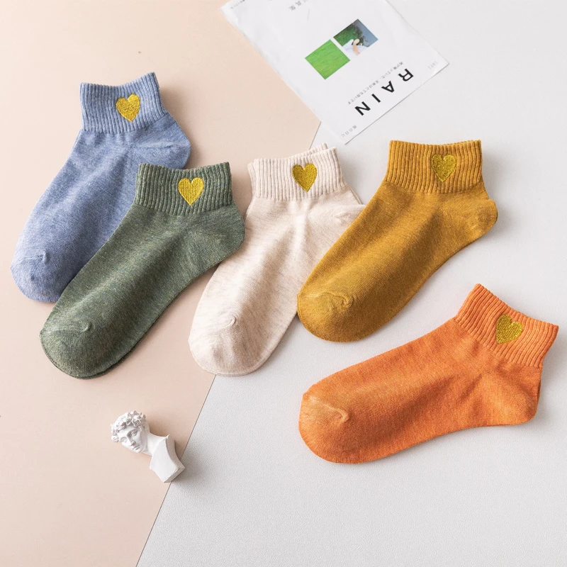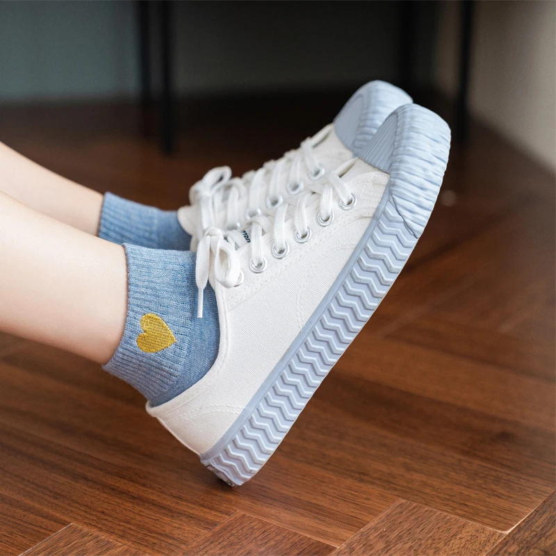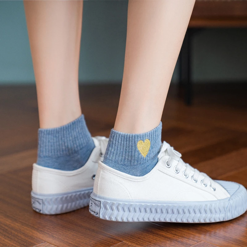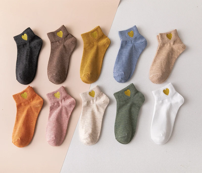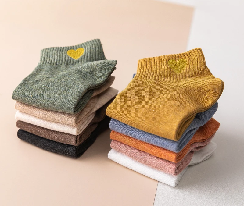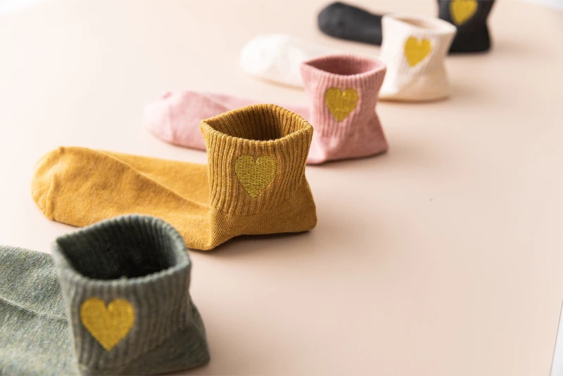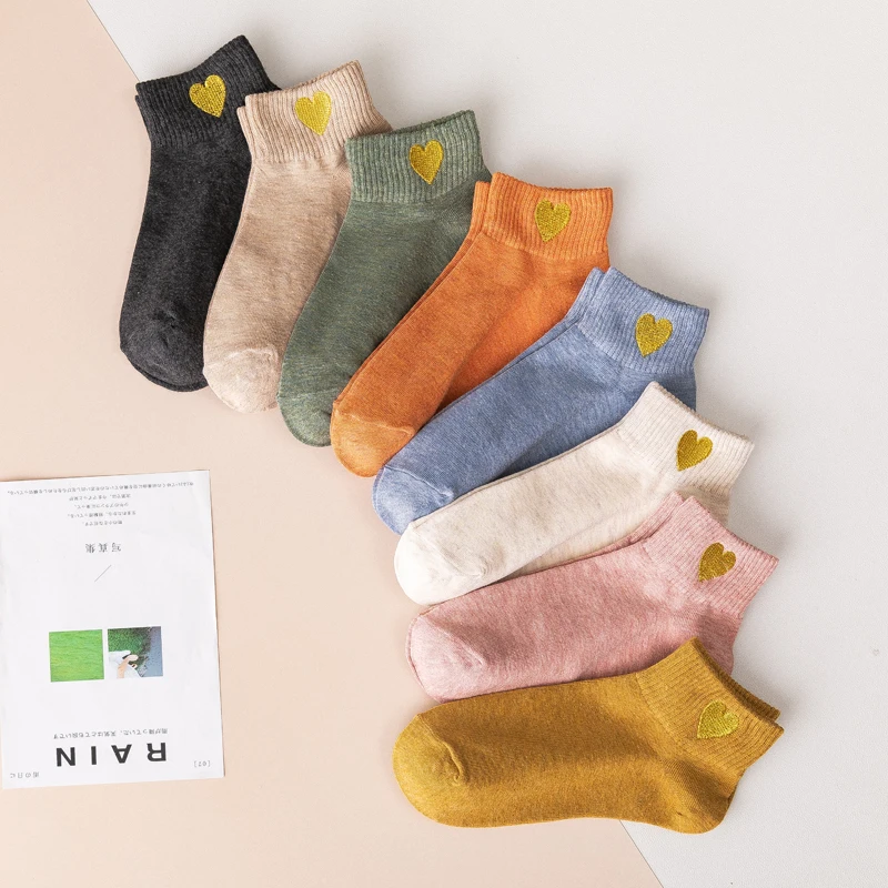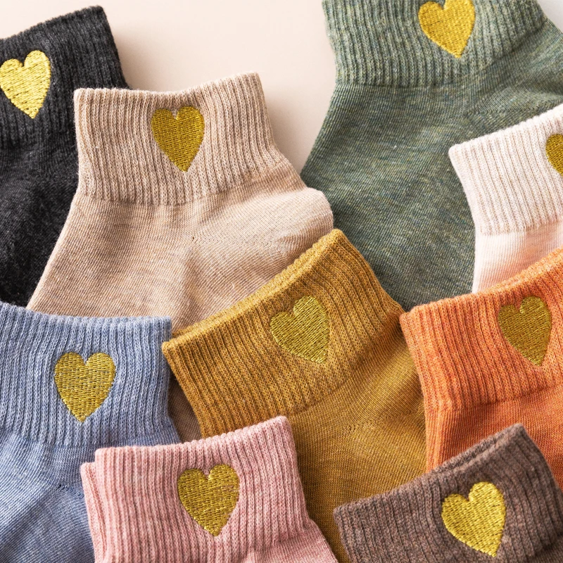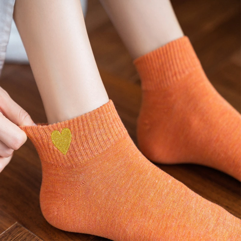 Носки женские спортивные в стиле Харадзюку, повседневные милые хлопковые однотонные с вышивкой, с веселым забавным сердцем, 1 пара