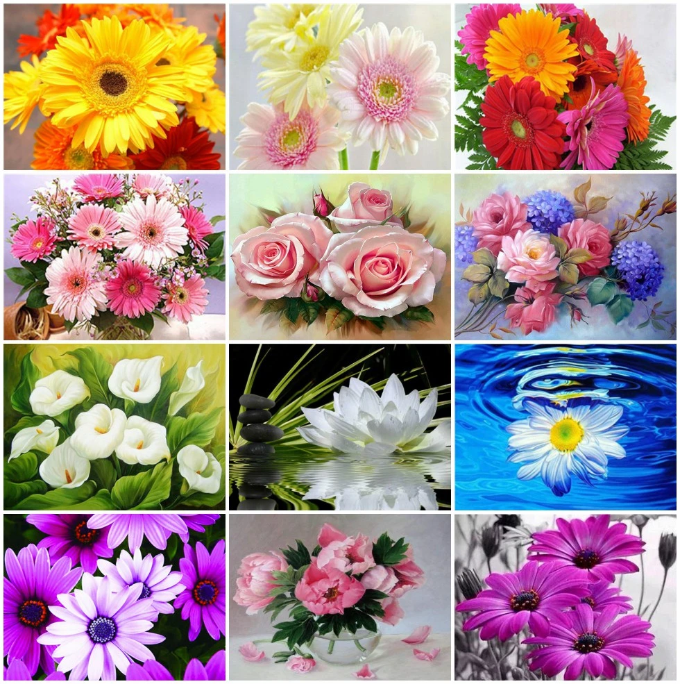 Набор для алмазной живописи EverShine, картина с квадратными цветами, искусство, украшение для стен из бисера, 5D сделай сам, украшение для стен