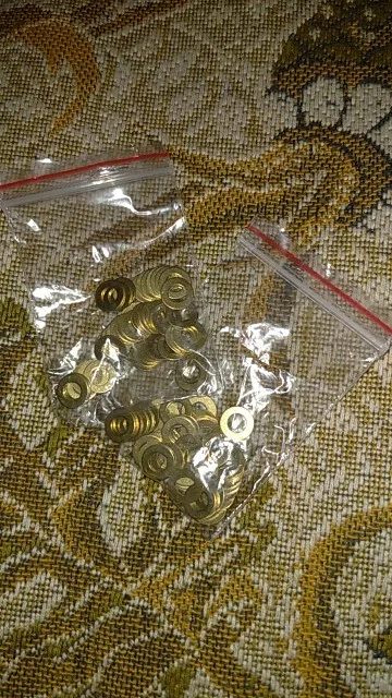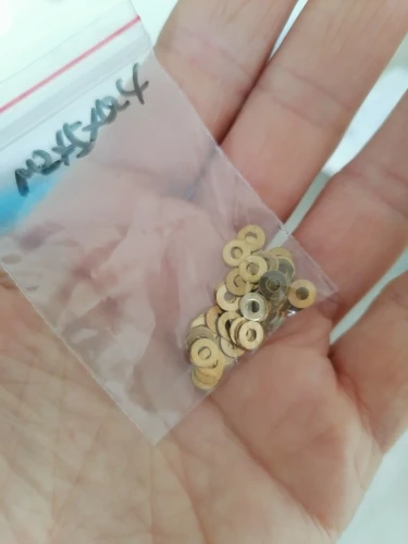 Шайбы хорошие. Немного хуже по качеству, чем М2, но хорошие. Наружный диаметр стабильный: 5,95...5,96 мм. В пакете одна бракованная (на фото её видно), но их всего 52 штуки, так что нет проблем. Толщина шайб разная. В пределах 0,42...0,44 (штук 20), 0,45...0,47 (ещё штук 20) и десяток - 0,49...0,53 мм. Мне с их помощью зазоры выставлять, так что такой набор просто как подарок. До Москвы 2 недели. Продавца рекомендую.