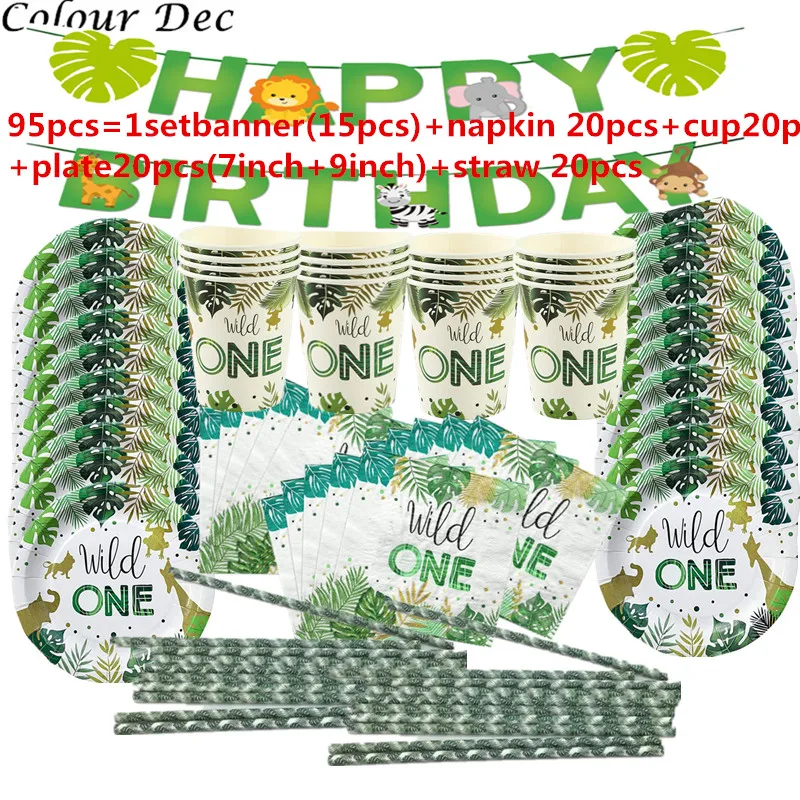 95 шт./компл. лес посуда в виде животных джунгли сафари День Рождения украшения Дикие один 1-й День Рождения вечерние принадлежности бумажные тарелки салфетки под чашки