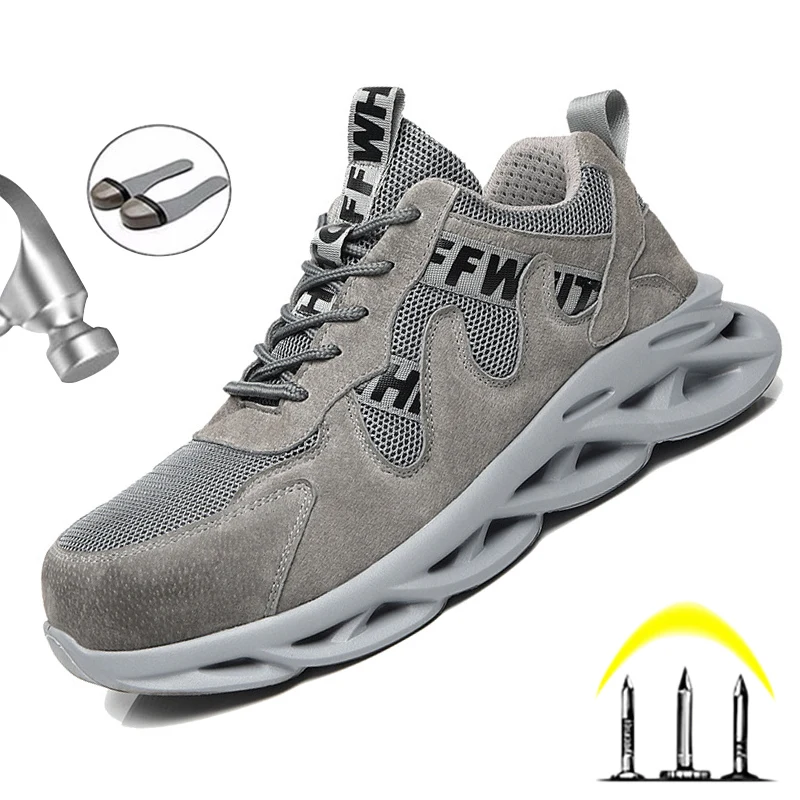 Кроссовки мужские со стальным носком, непробиваемые защитные кеды, легкие рабочие ботинки, Рабочая обувь для взрослых