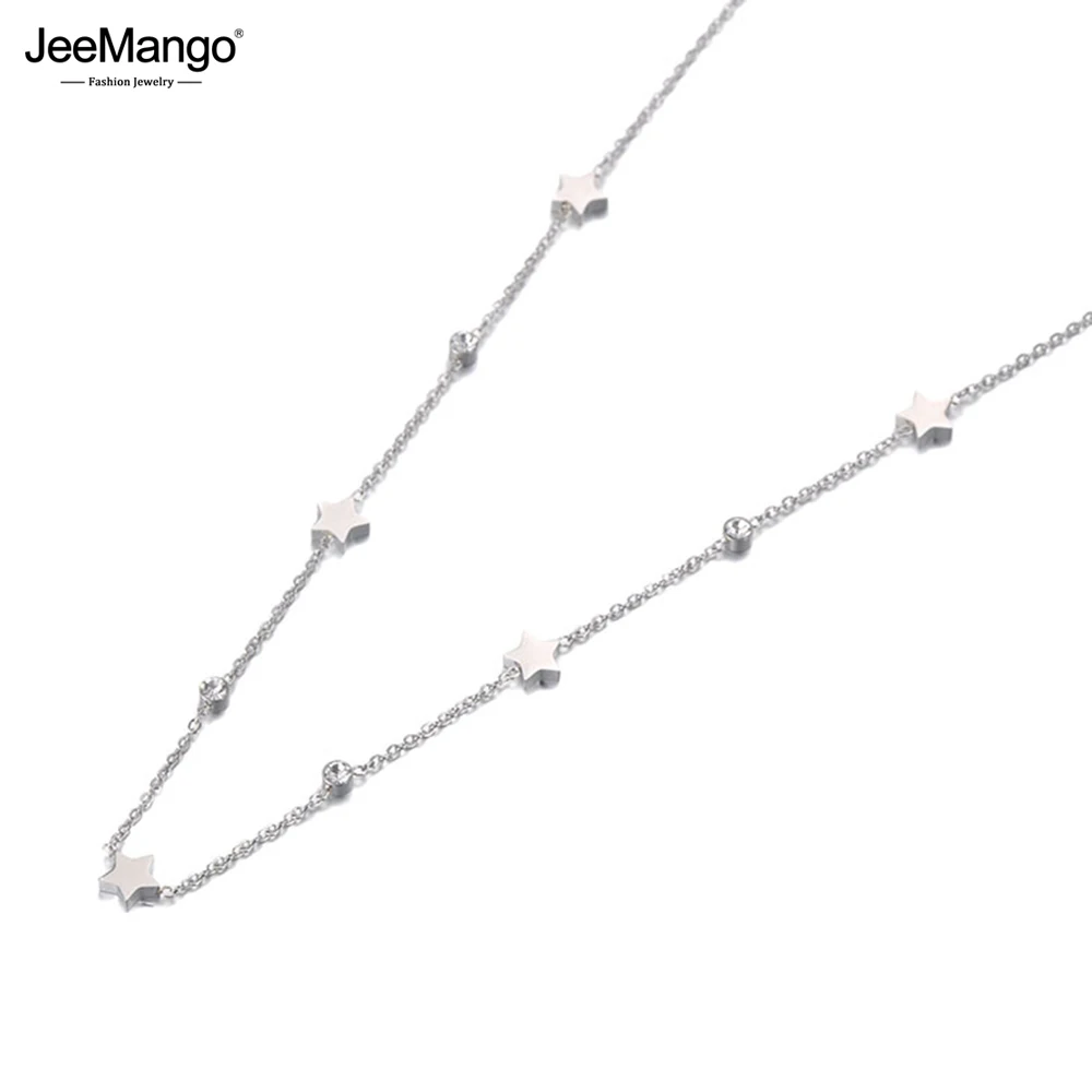 JeeMango модное богемное ожерелье-чокер из титановой стали с кристаллами CZ, пляжные ювелирные изделия, цепочка с подвеской, ожерелье для женщин JN19124