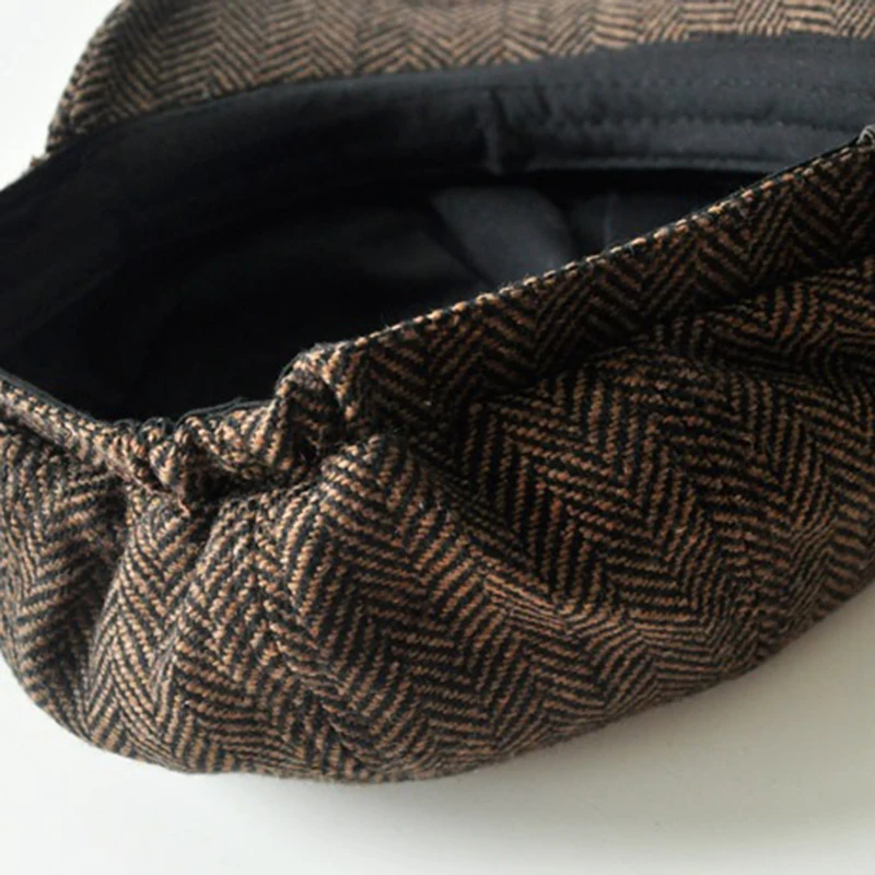 Ретро весенне-осенняя повседневная шерстяная восьмиугольная шапка м...