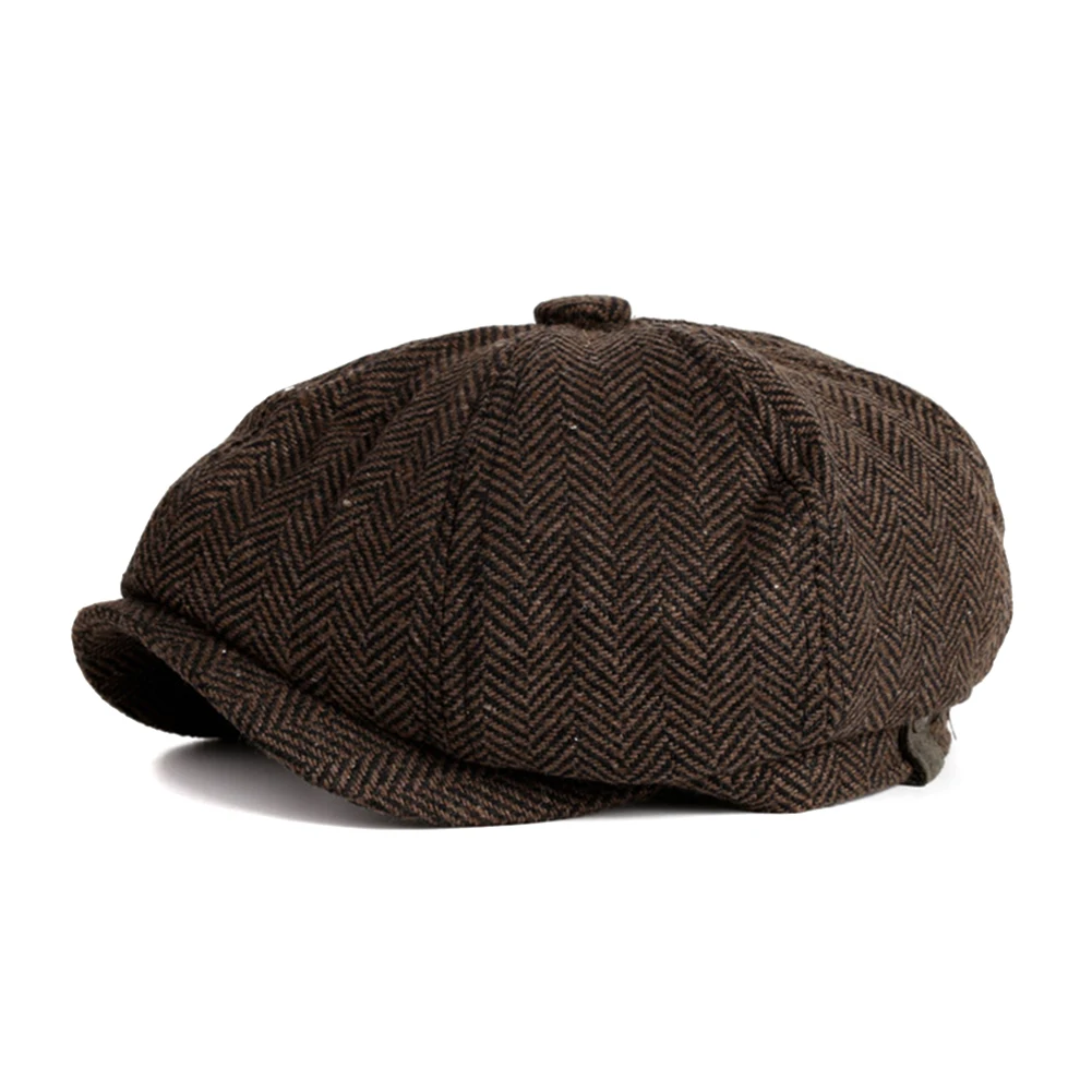 Новая мужская Кепка с застежкой Newsboy, модная мужская классическая твидовая Кепка с узором в елочку на весну и осень