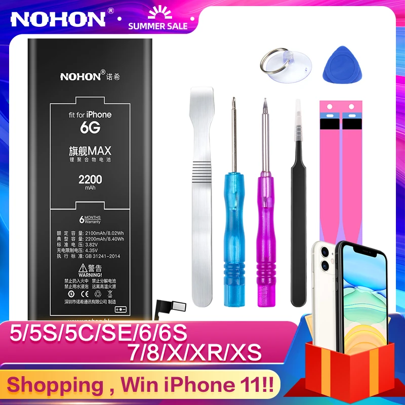 Батарея NOHON для iPhone, для моделей iPhone 6, 6S, 7, 8 SE, X, 5, 5S, 5C, Xs, Xr, литиевая батарея большой емкости, сменный аккумулятор