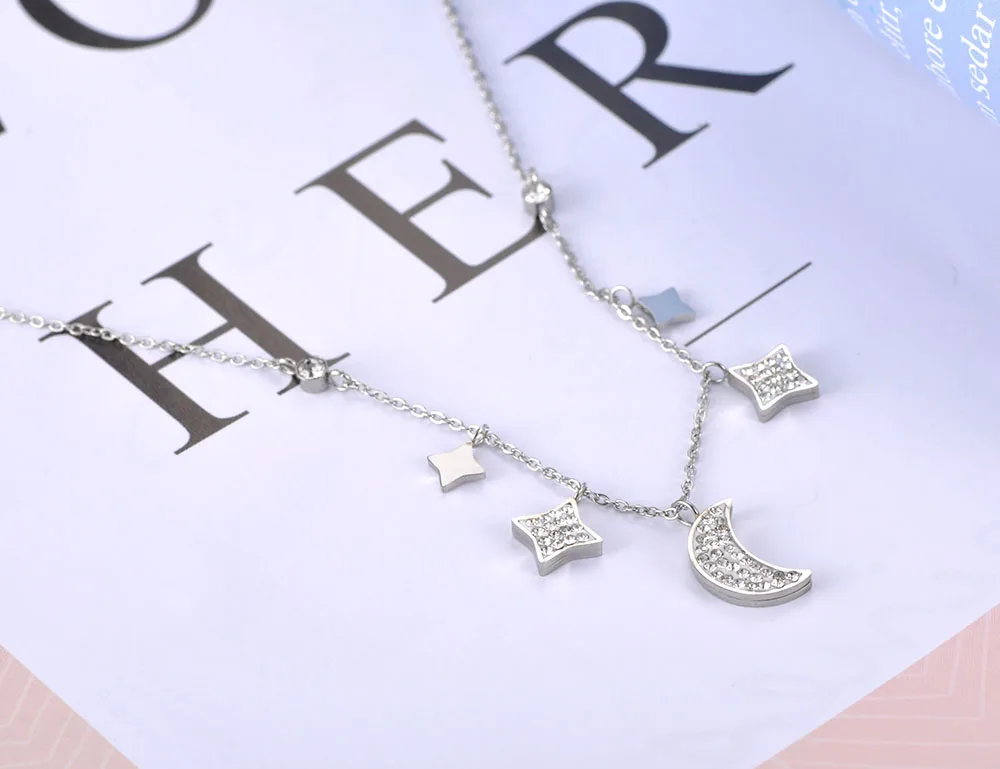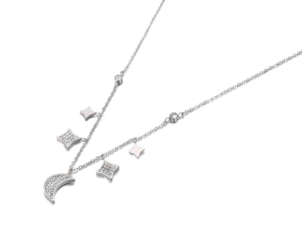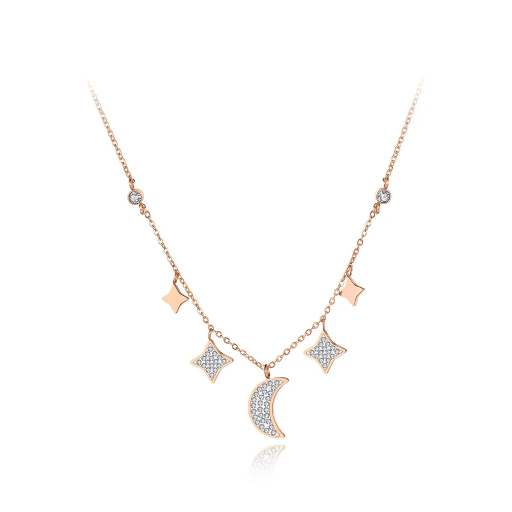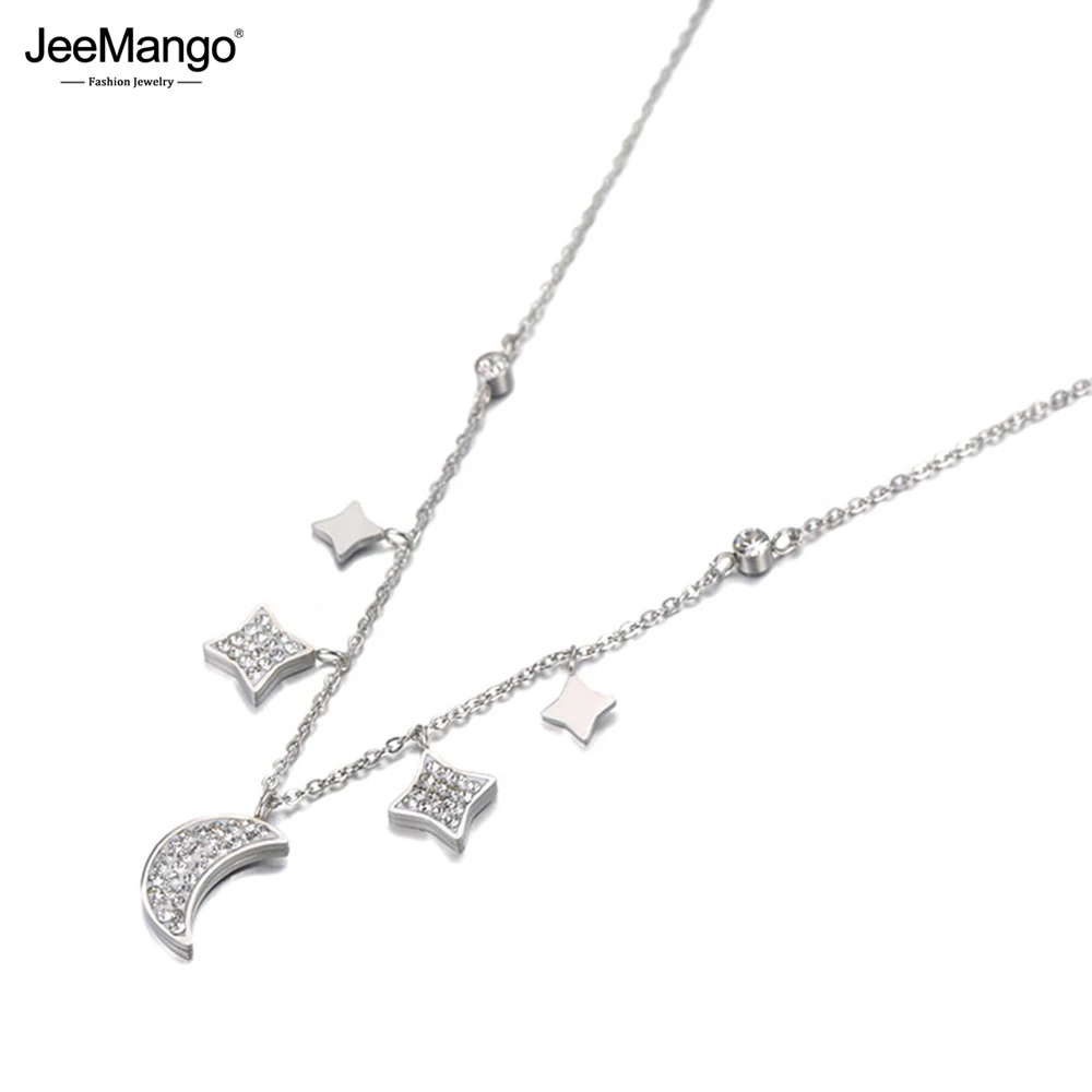 JeeMango винтажное ожерелье из нержавеющей стали CZ Хрустальная звезда Подвеска в виде Луны модное ожерелье-чокер для женщин JN19116