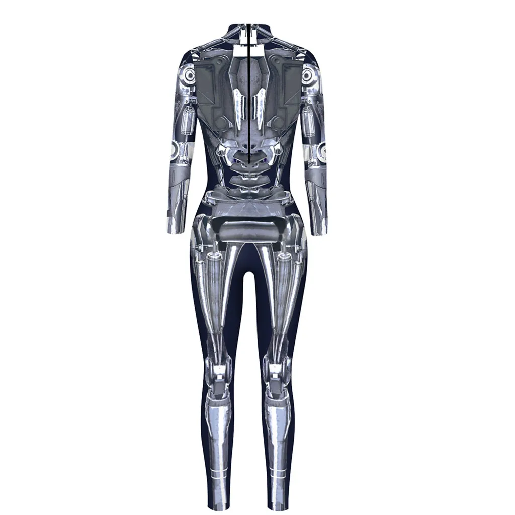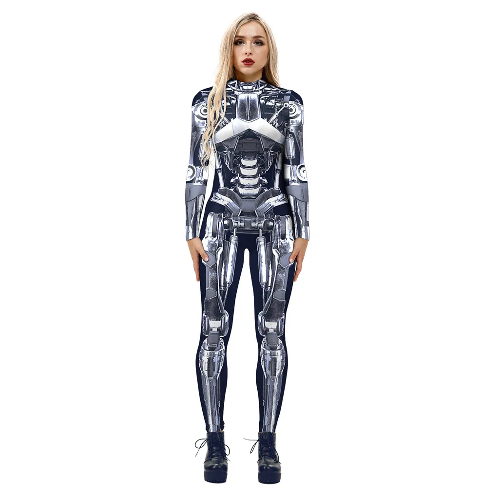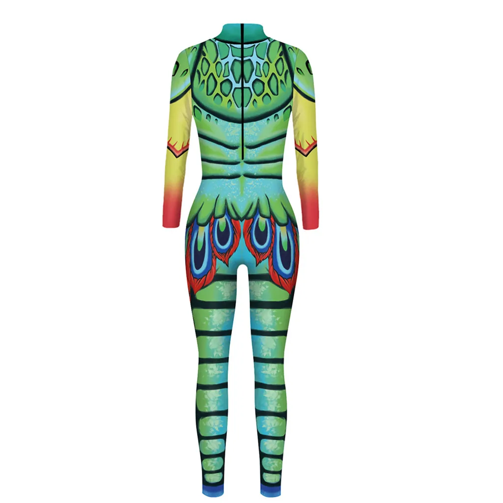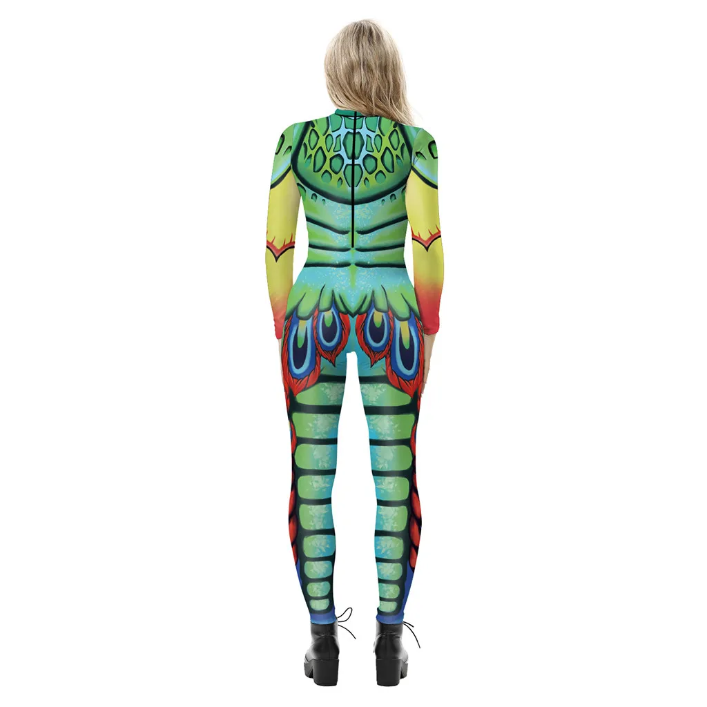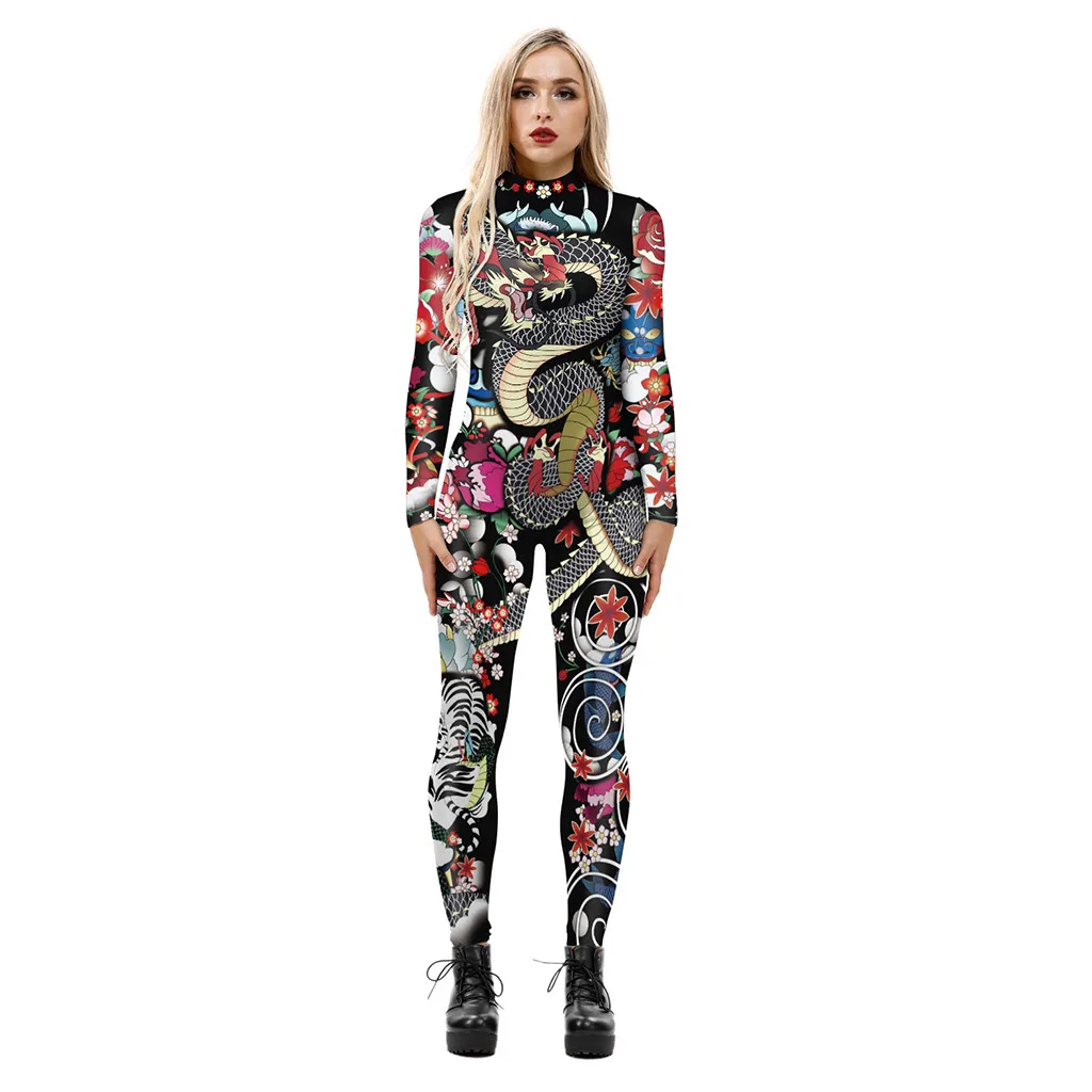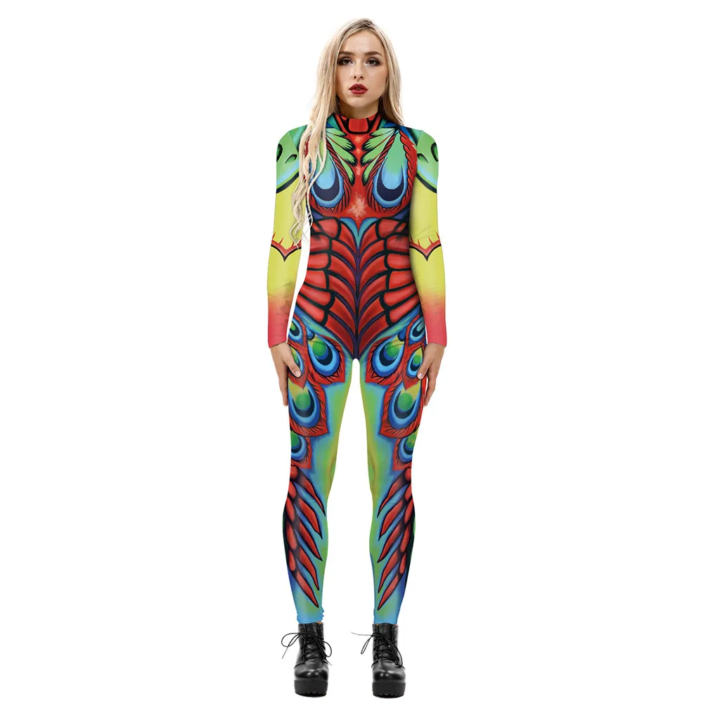 Женская мода Boho Хэллоуин печати с длинным рукавом Тонкий костюм на молнии комбинезон