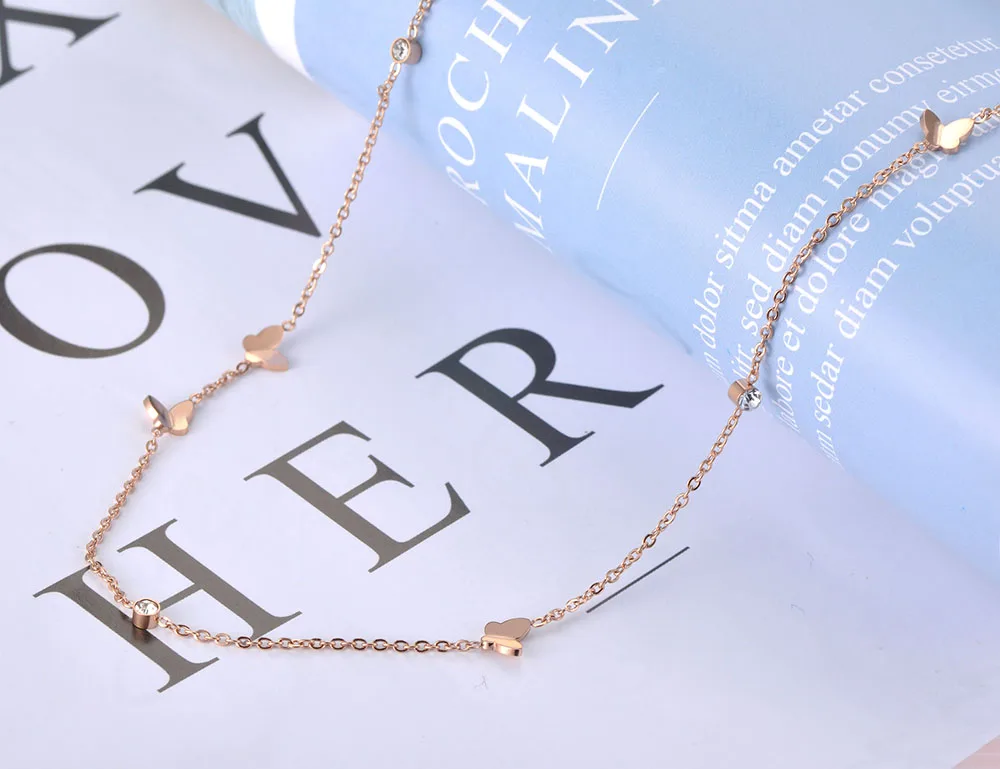 JeeMango, Трендовое колье из нержавеющей стали с бабочкой и кристаллами CZ, ювелирное изделие, Очаровательная подвеска, цепочка, ожерелье для женщин, JN19119