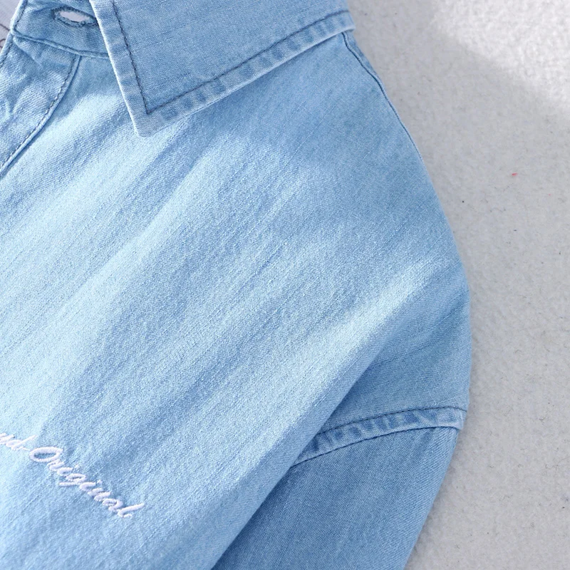 Джинсовая рубашка Schinteon, тонкая, из 100% хлопка, с коротким рук...