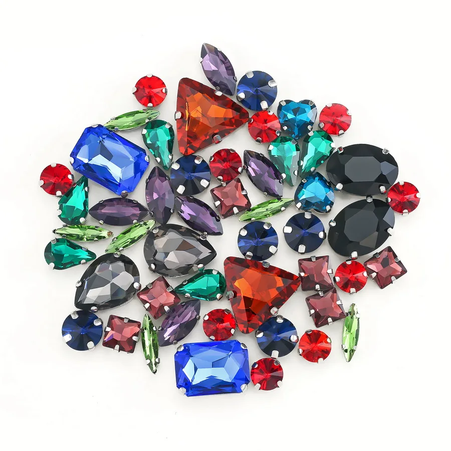 Настройки серебристых когтей, 50 шт.пакет, Микс, желейные конфеты, оранжевое стекло, кристаллы для шитья, стразы для одежды, сумки для обуви, сделай сам