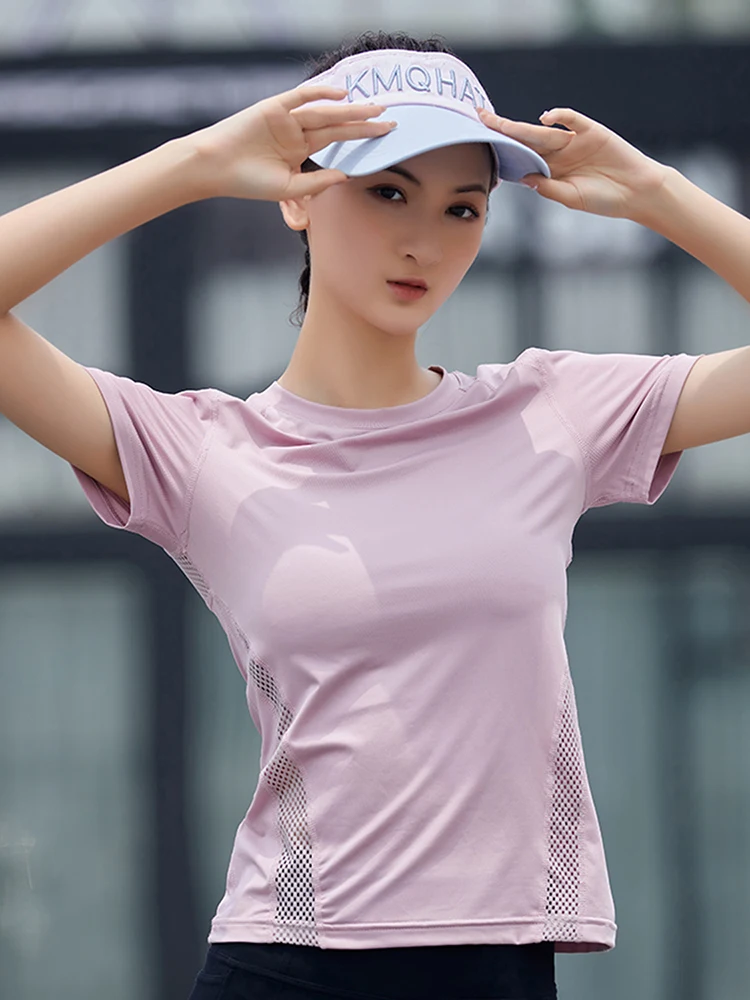Спортивная женская рубашка с вырезами для тренажерного зала укороченный топ для фитнеса тренировочный с коротким рукавом дышащая тонкая быстросохнущая Спортивная одежда для активного отдыха