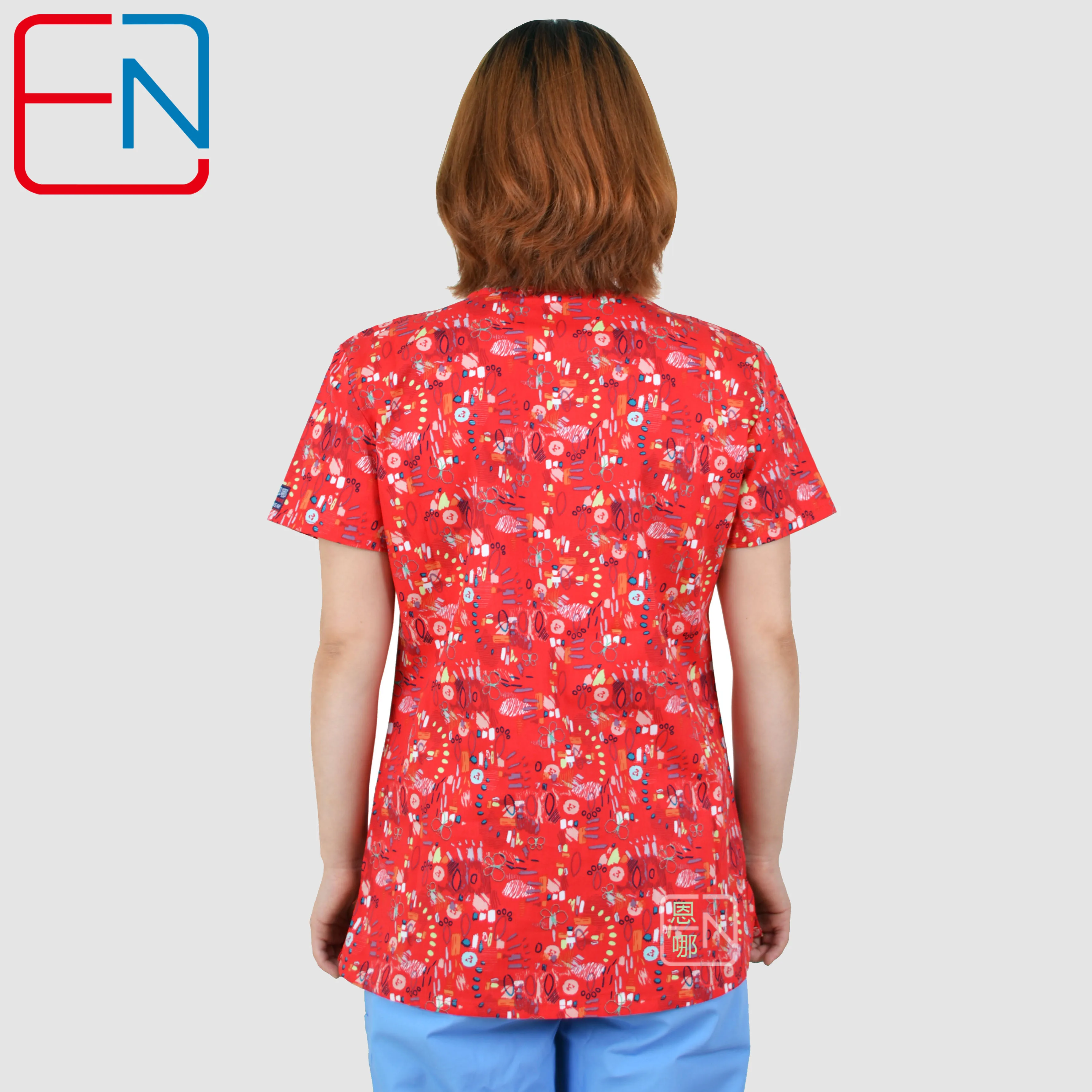 XXS-5XL, Женский скраб-топ, 100% принт, хлопчатобумажная униформа, ...
