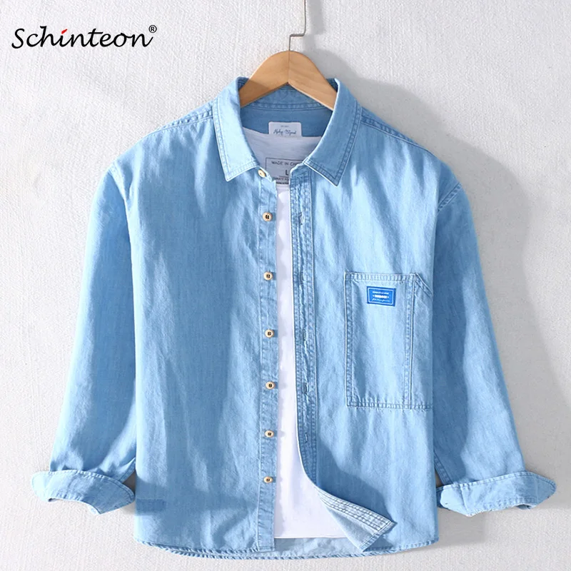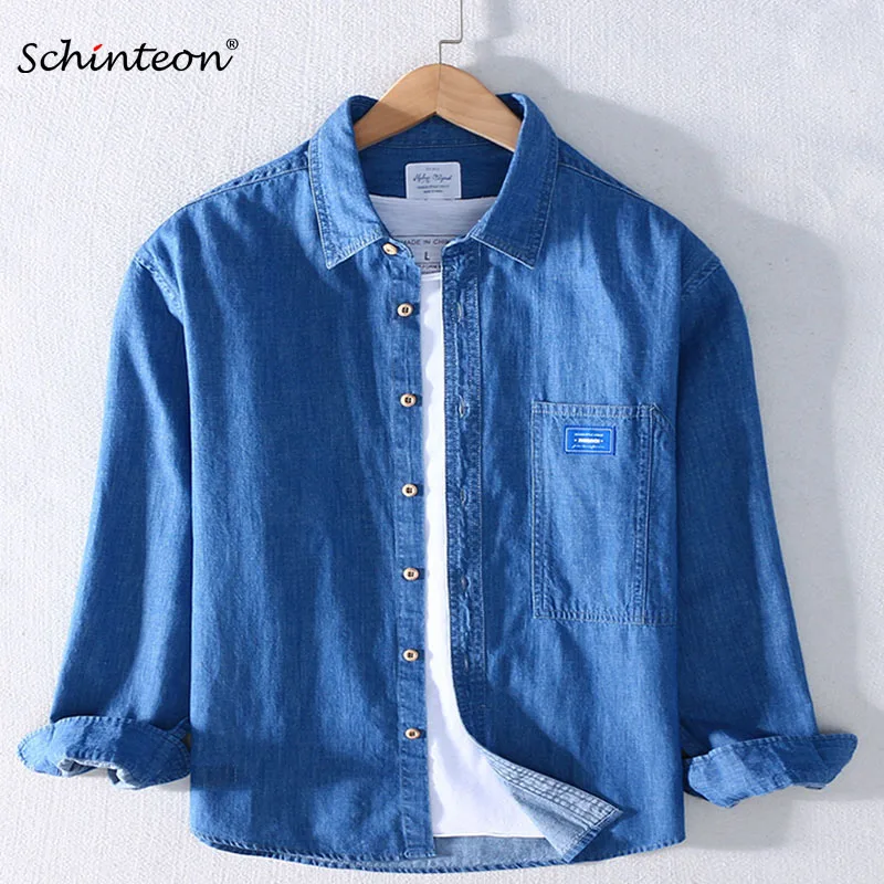 Мужская джинсовая рубашка Schinteon, повседневная Осенняя рубашка из 2020 хлопка с длинными рукавами и отложным воротником, 100%
