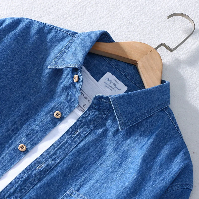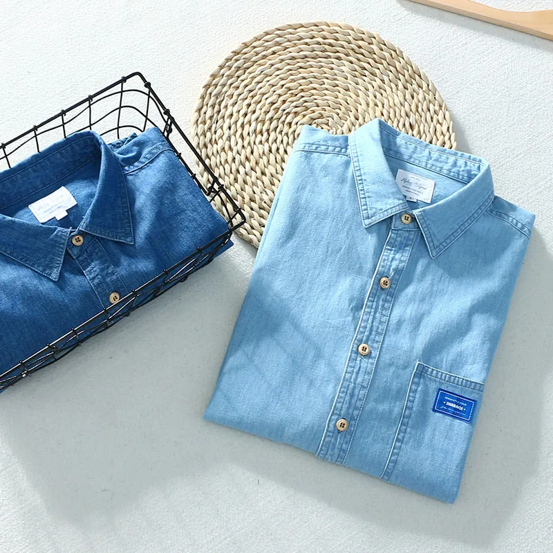 Джинсовая рубашка Schinteon Мужская, тонкая, из мягкого 100% хлопка...