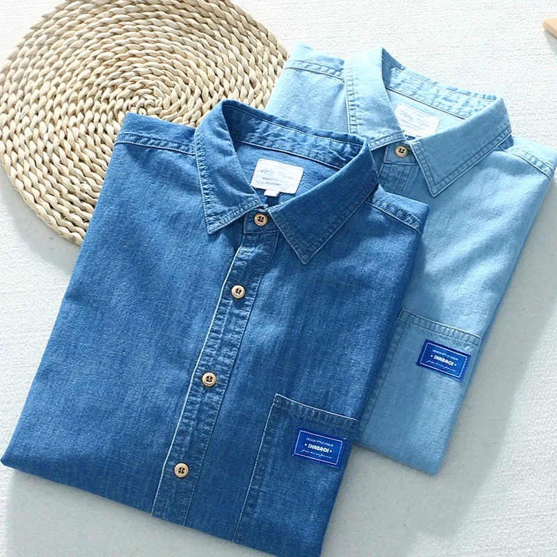Джинсовая рубашка Schinteon, тонкая, из 100% хлопка, с коротким рук...
