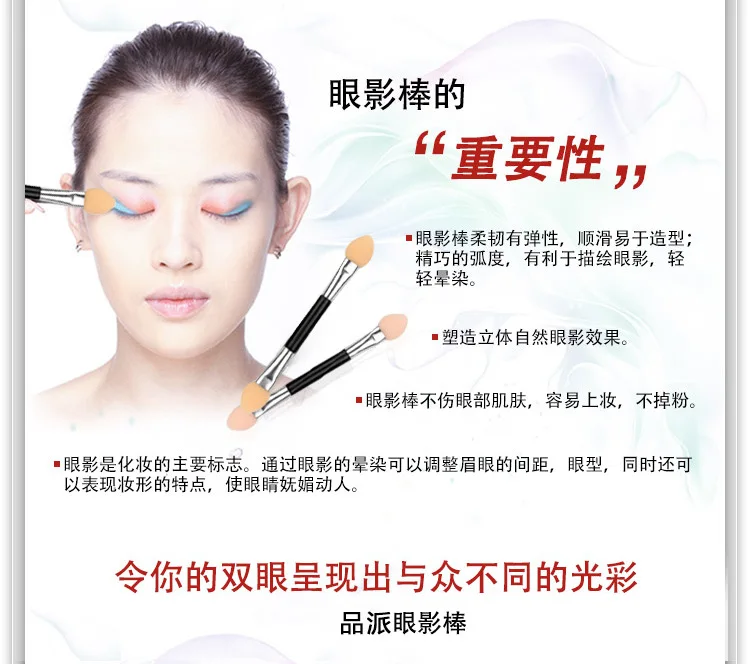 . Палочка для теней для век Гибкая и эластичная, гладкая и легкая в форме; Изысканная дуга способствует нанесению теней для век и легкому смешиванию.2. Создайте трехмерный естественный эффект теней для век, палочка для теней для век не повредит кожу глаз, легко наносится макияж и не выпадает порошок3. Тени для век являются основным символом макияжа. Благодаря смешиванию теней для век вы можете регулировать расстояние между бровями и формой глаз, а также выразить характеристики макияжа, делая глаза очаровательными и движущимисяСделайте ваши глаза отличительным блеском