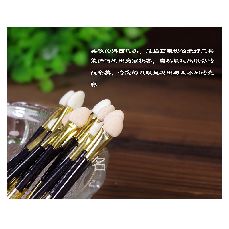 Двухсторонняя кисть для теней для век, палочка для теней для век, инструменты для макияжа, двухсторонняя губка для пудры, палочки 10 штук губки