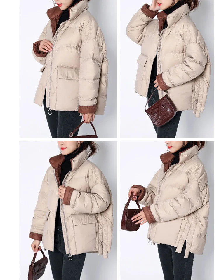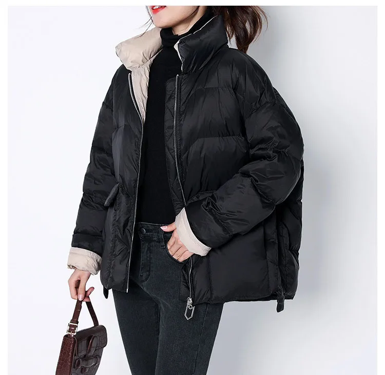 Куртка женская зимняя на 2020 пуху белой утки, светильник воротником-стойкой и двумя большими карманами, 90%