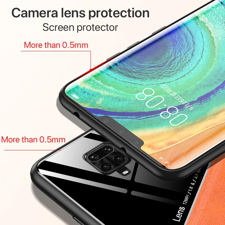 Style 7Leather + Glass Mirror Tempered Glass Case Protect Camera Lens Cover