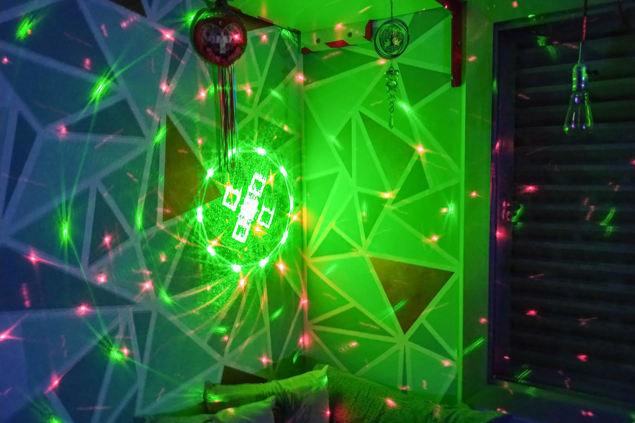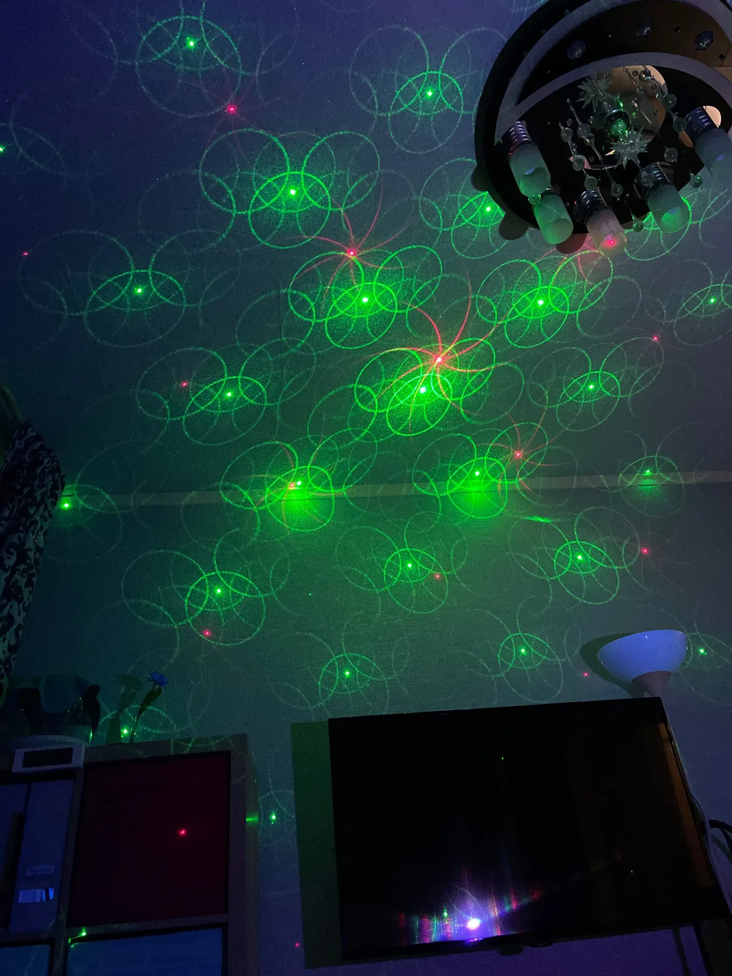 Пожалуй, одно из лучших приобретений на Али. Проекция лазеров ОЧЕНЬ высокого качества, есть несколько различных авто-программ, реакция на музыкальные биты, отдельная проекция зеленого и красного лазера, и много индивидуальных программ на борту. Управляется все с пульта (батарейки в комплекте). Для оформления домашнего эмбиента однозначно одна из лучших моделей. Фото передает лишь 30% реального восторга от увиденного. Доставка до МСК за пару дней.