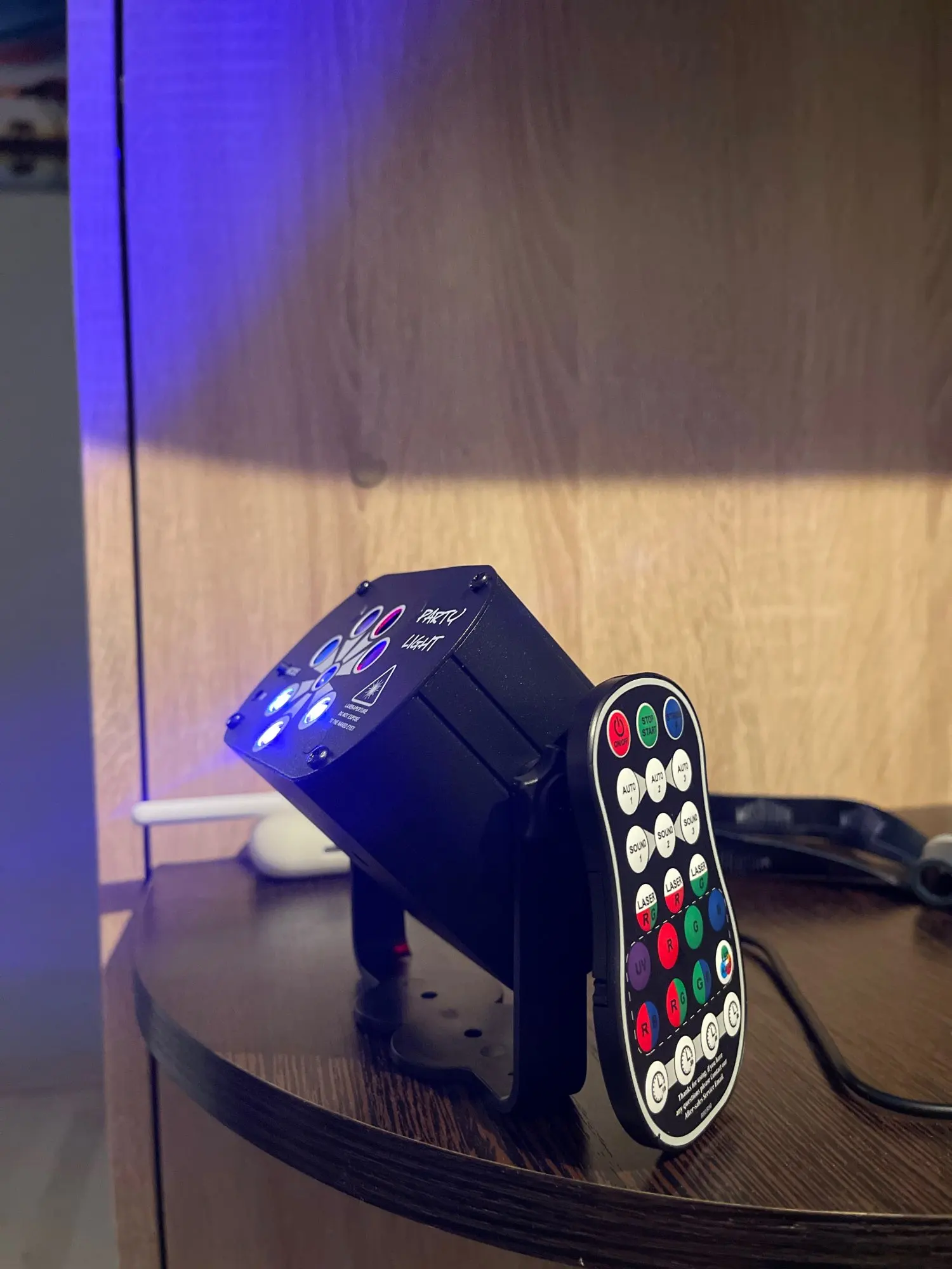 Компактная приблуда, не ожидал что так будет светить, режимов ну очень много, ещё и под бит ( такт) музыки подстраивается, на пульте тоже пипец режимов, будем разбираться, инструкция - моя твоя не понимать, и работает без батареек ) , светит далеко, надеюсь долго сможет прослужить