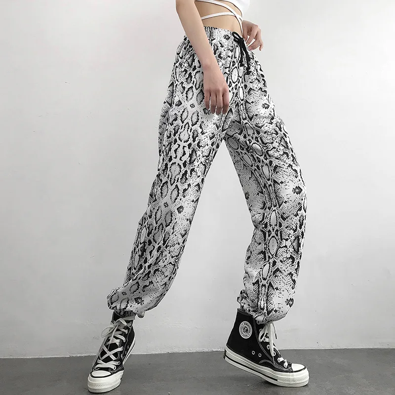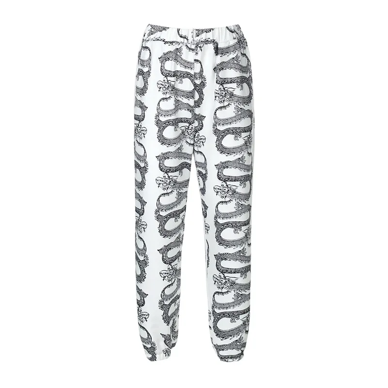Брюки женские эластичные с высокой талией, повседневные Прямые свободные модные штаны с принтом змеи дракона, модные уличные штаны