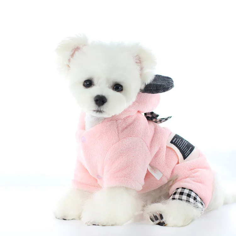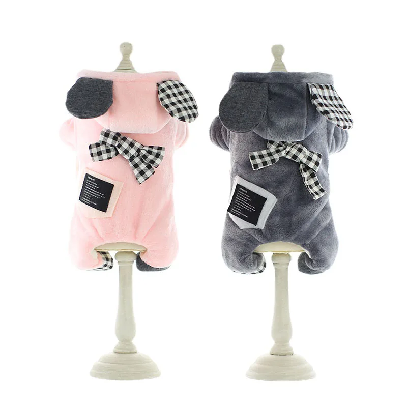 Одежда для собак розового и серого цветов с шапкой, осенне-зимняя клетчатая одежда для щенков с четырьмя лапами, женская одежда для собак, куртка