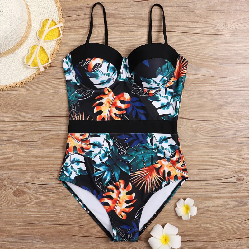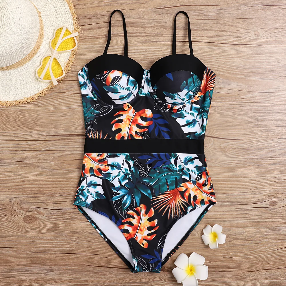 Купальник слитный Женский, пуш-ап, с высокой талией, с принтом