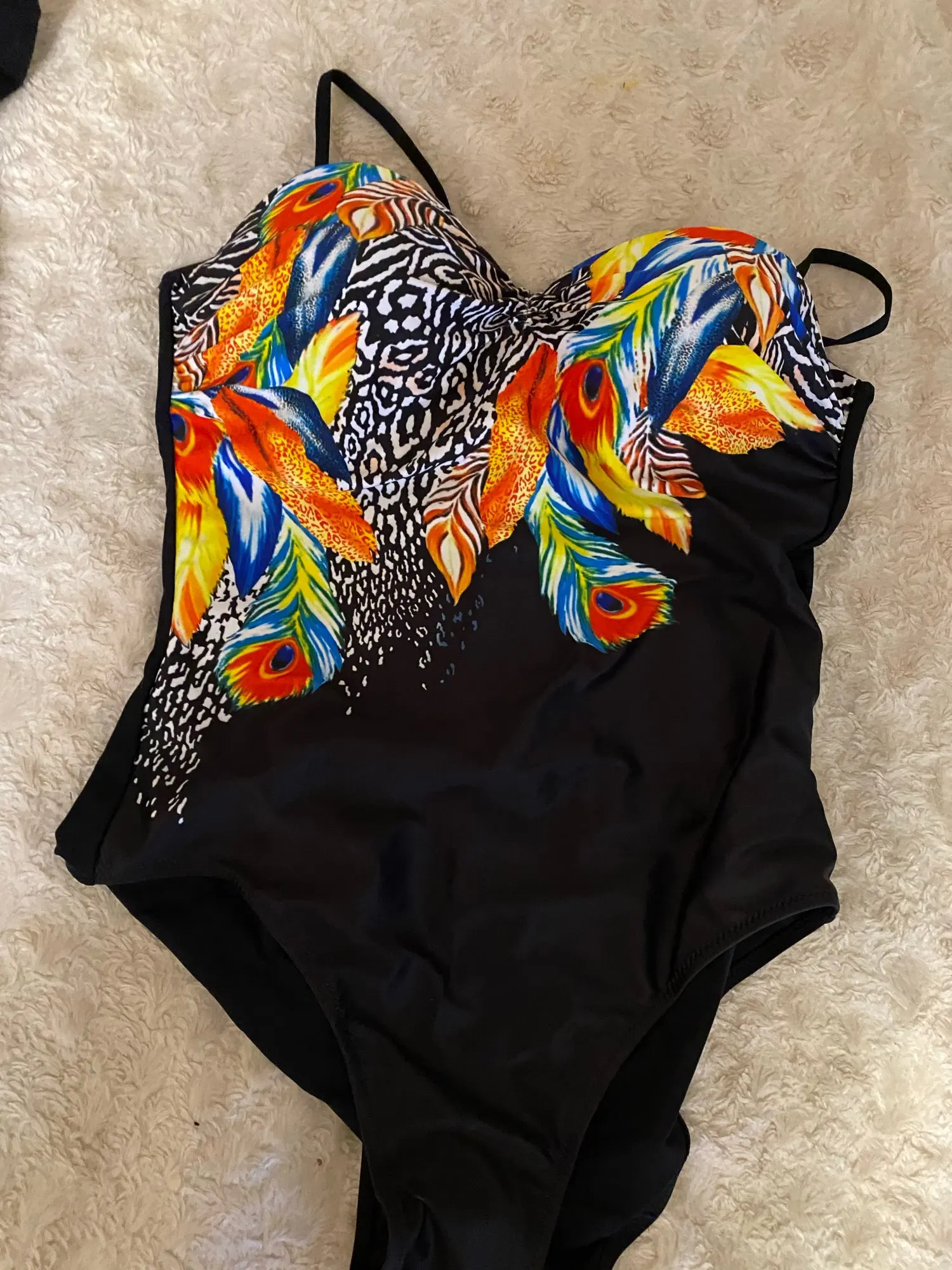 Новый цельный большой купальник с принтом, закрытый женский купальн...