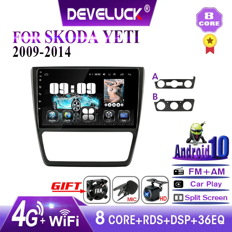 10 "Android 10,0 для Skoda Yeti 5L 2009-2015 автомобиля радио 2din стерео 4G + Wifi RDS GPS навигации мультимедийный видеоплеер с рамкой