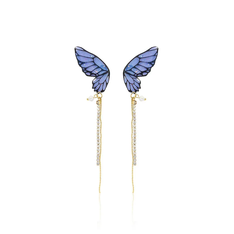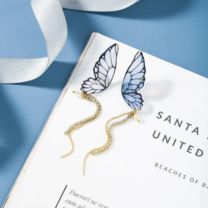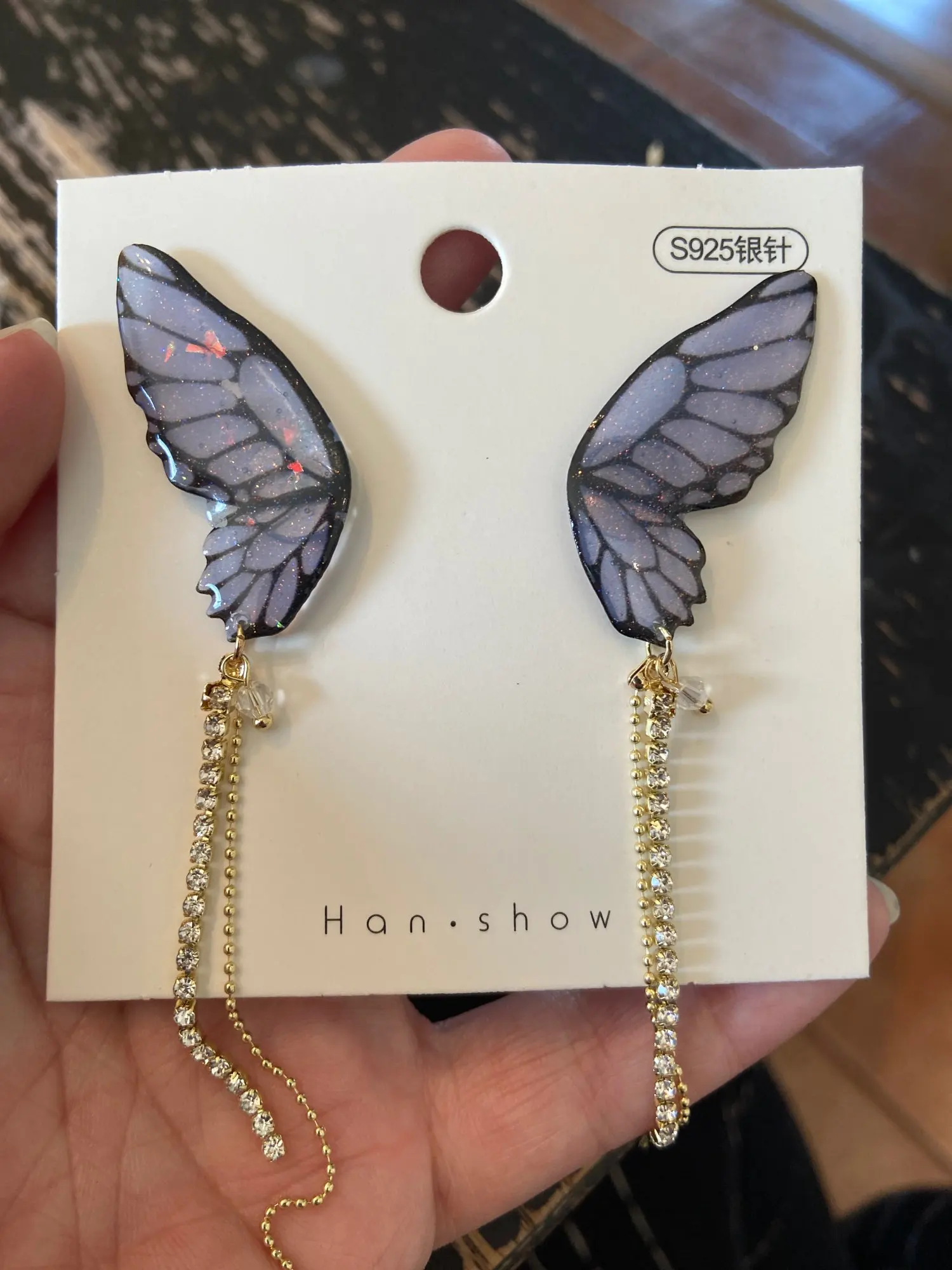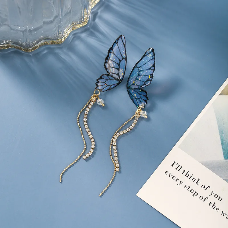 Женские серьги с бабочками, длинные висячие серьги с блестящими кристаллами, 2020